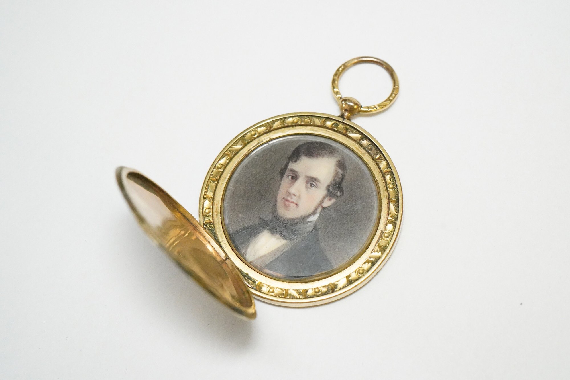Notes - This is a very finely made antique locket! It features a hand painted portrait of a dandy gentlemen.