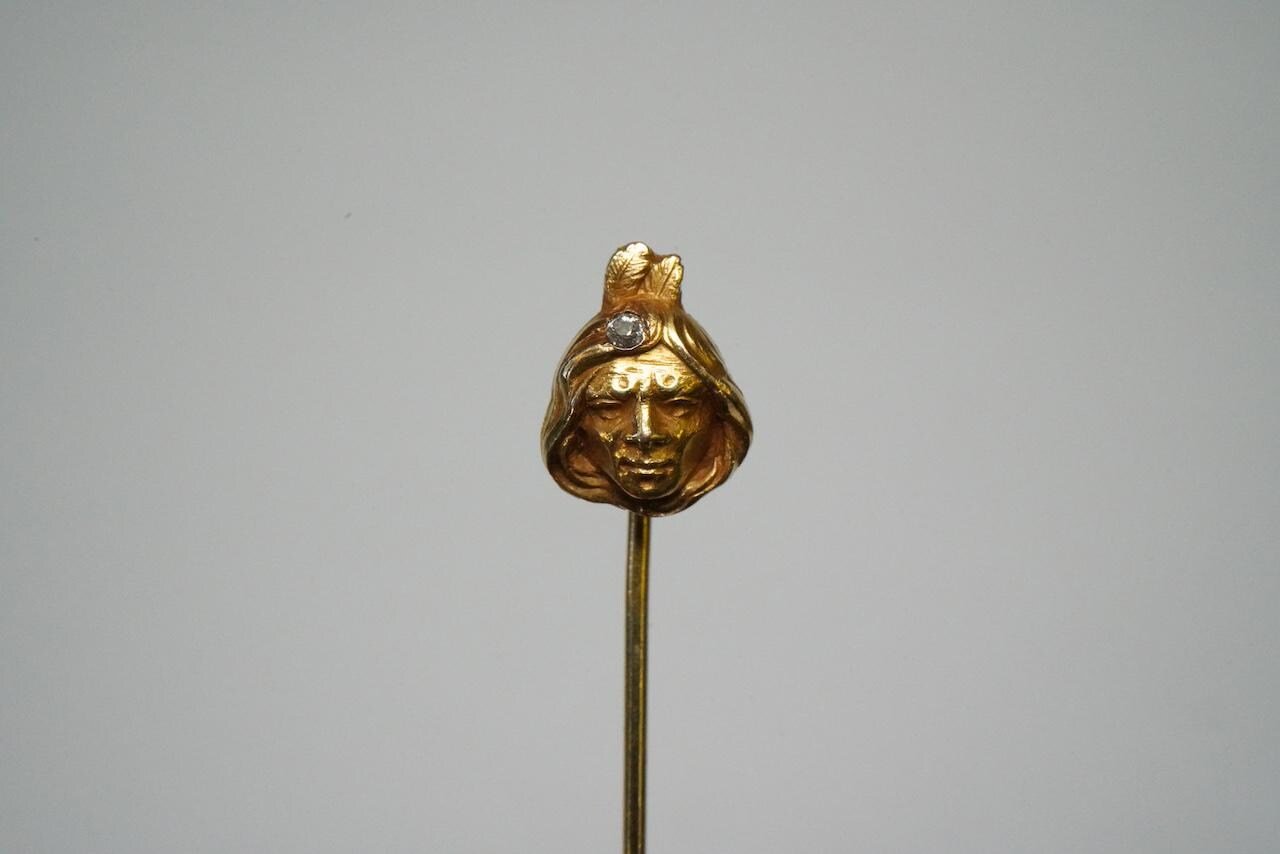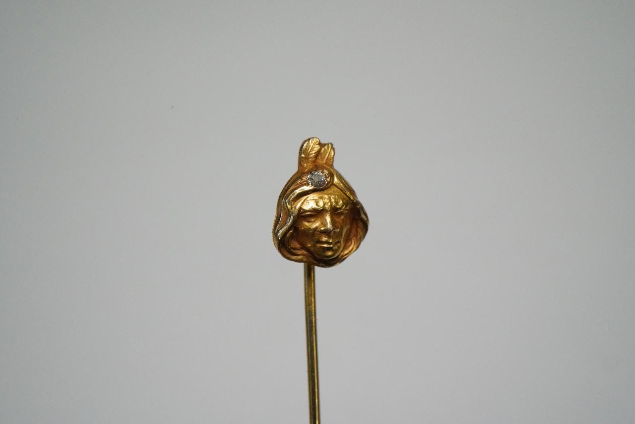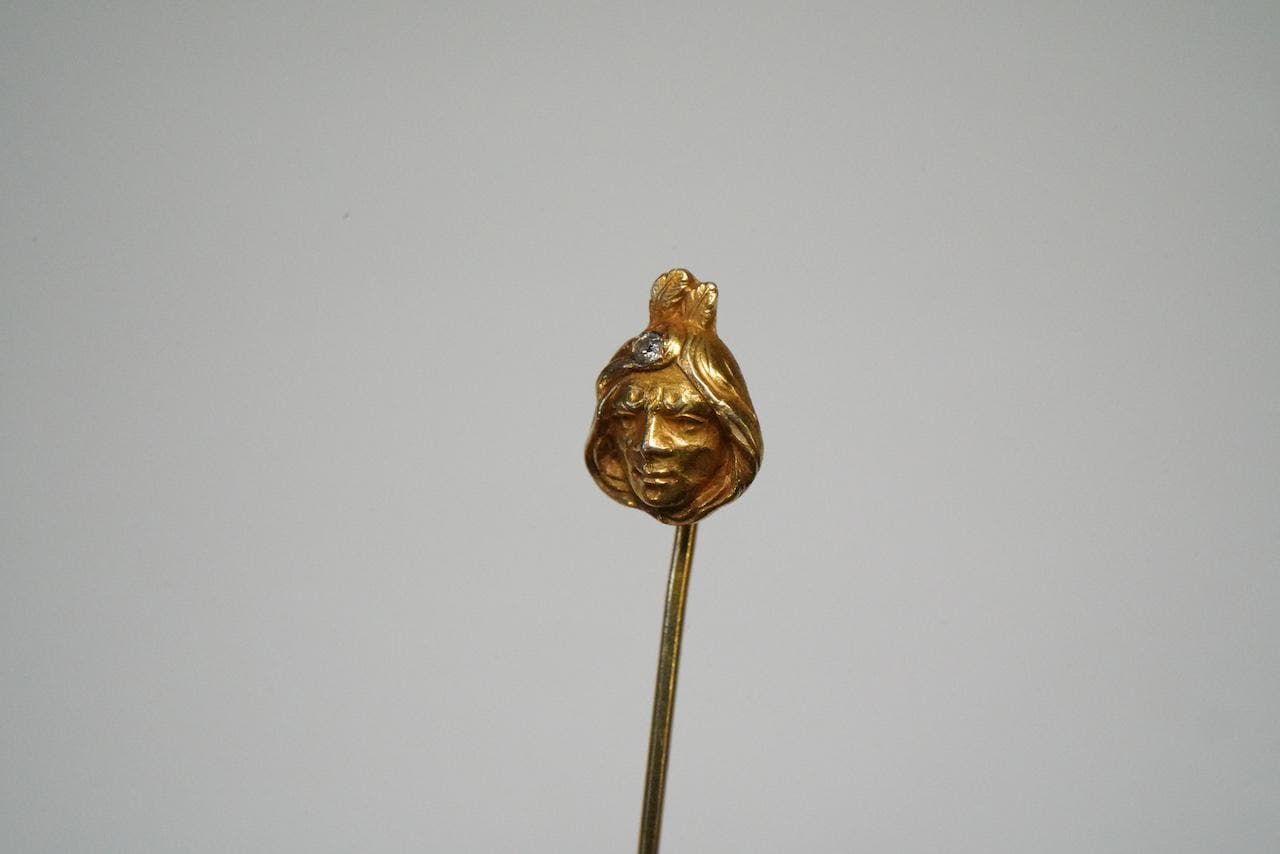 Antique 14k Gold, Diamond American Indian Motif Stick Pin - Antique, Native American Motif - Anti...