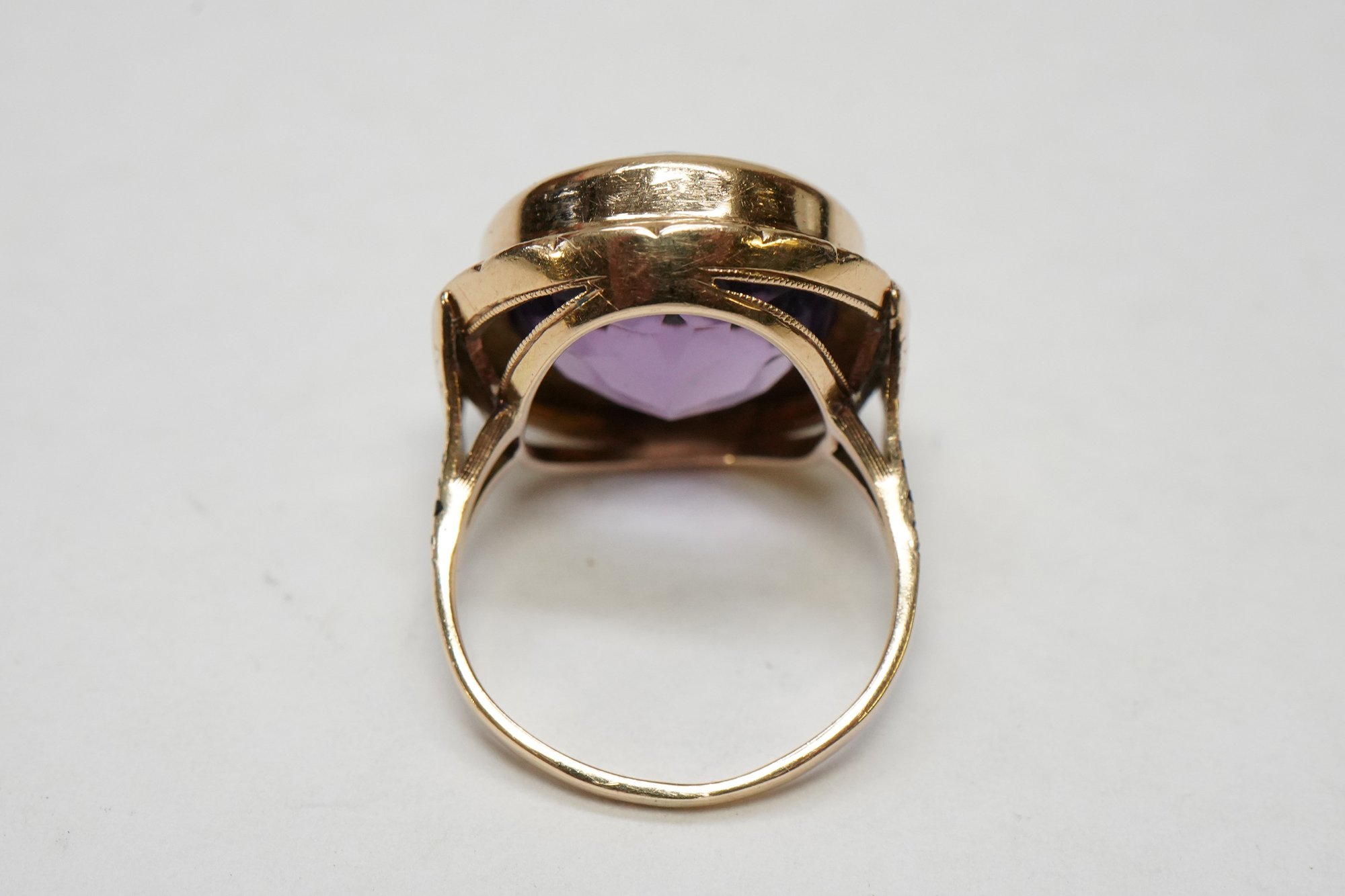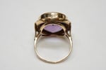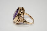 Antique 14k Yellow Gold, Amethyst Ring with Encrusted Rose Cut Diamond Motif