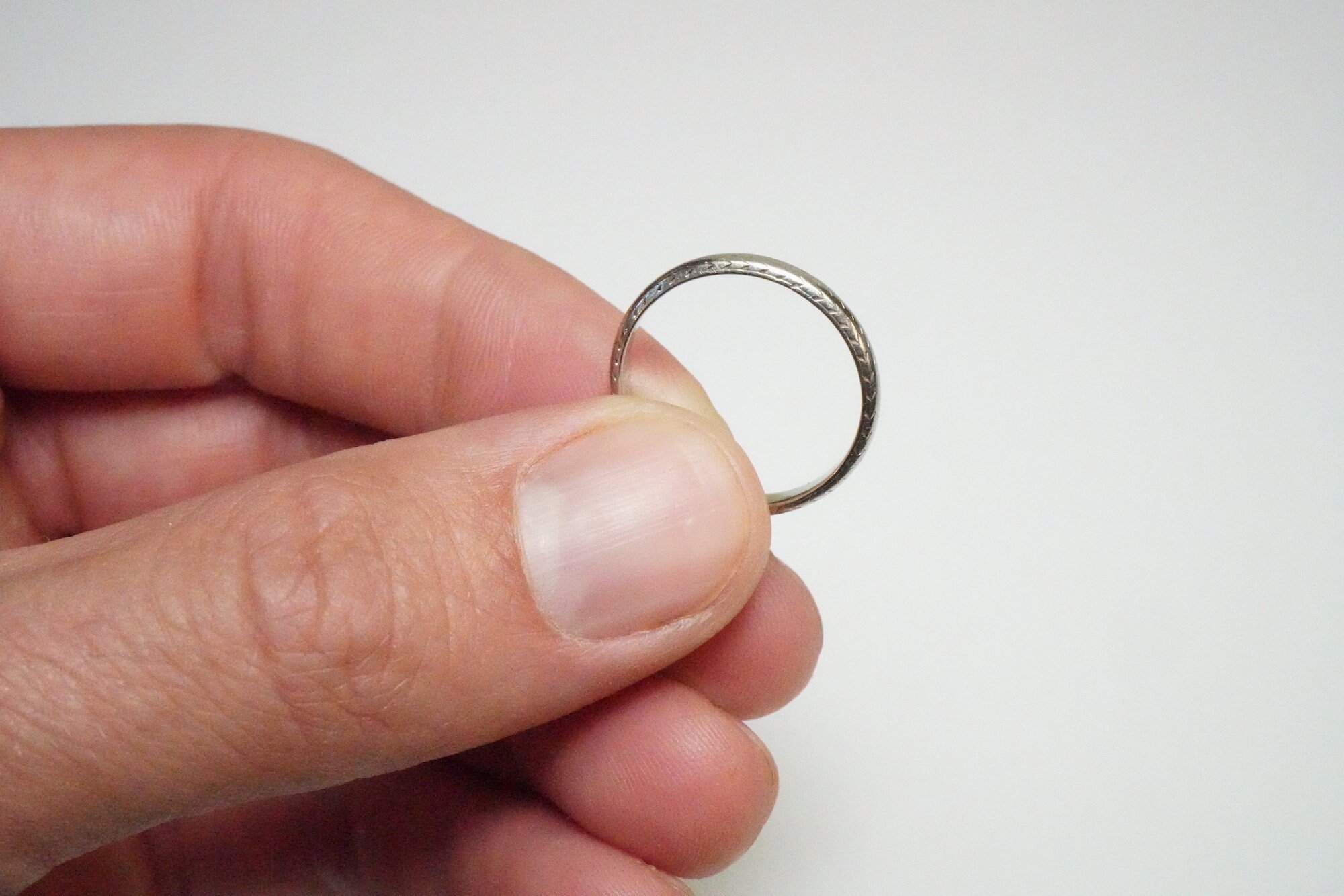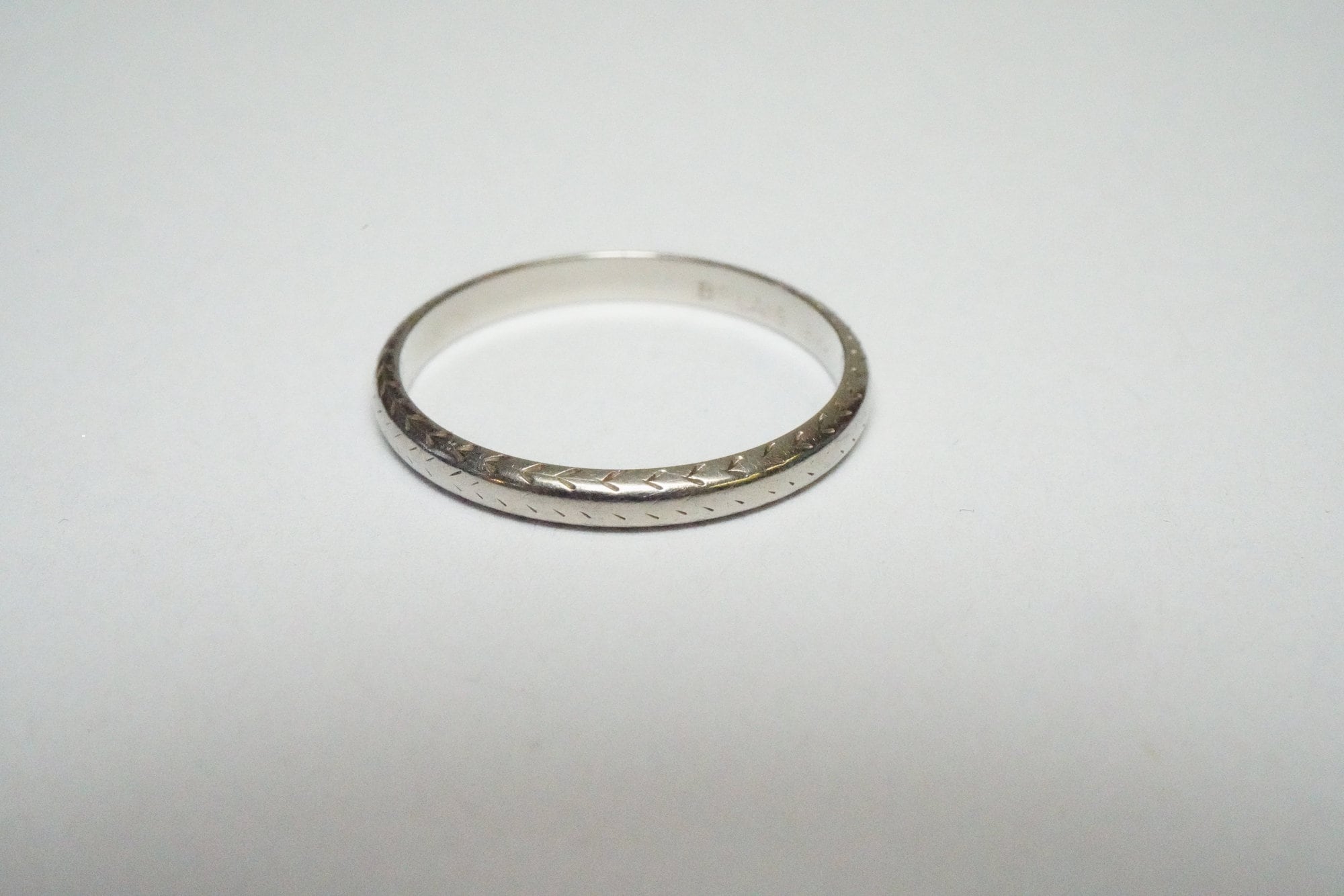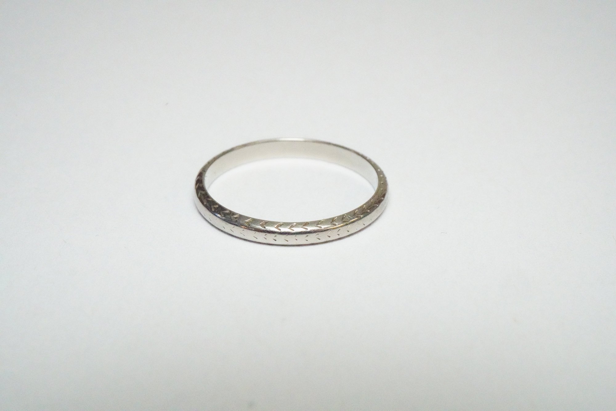 Antique 18k Belais White Gold Pattern Band - Vintage White Gold Pattern Band - Rare, Size 7