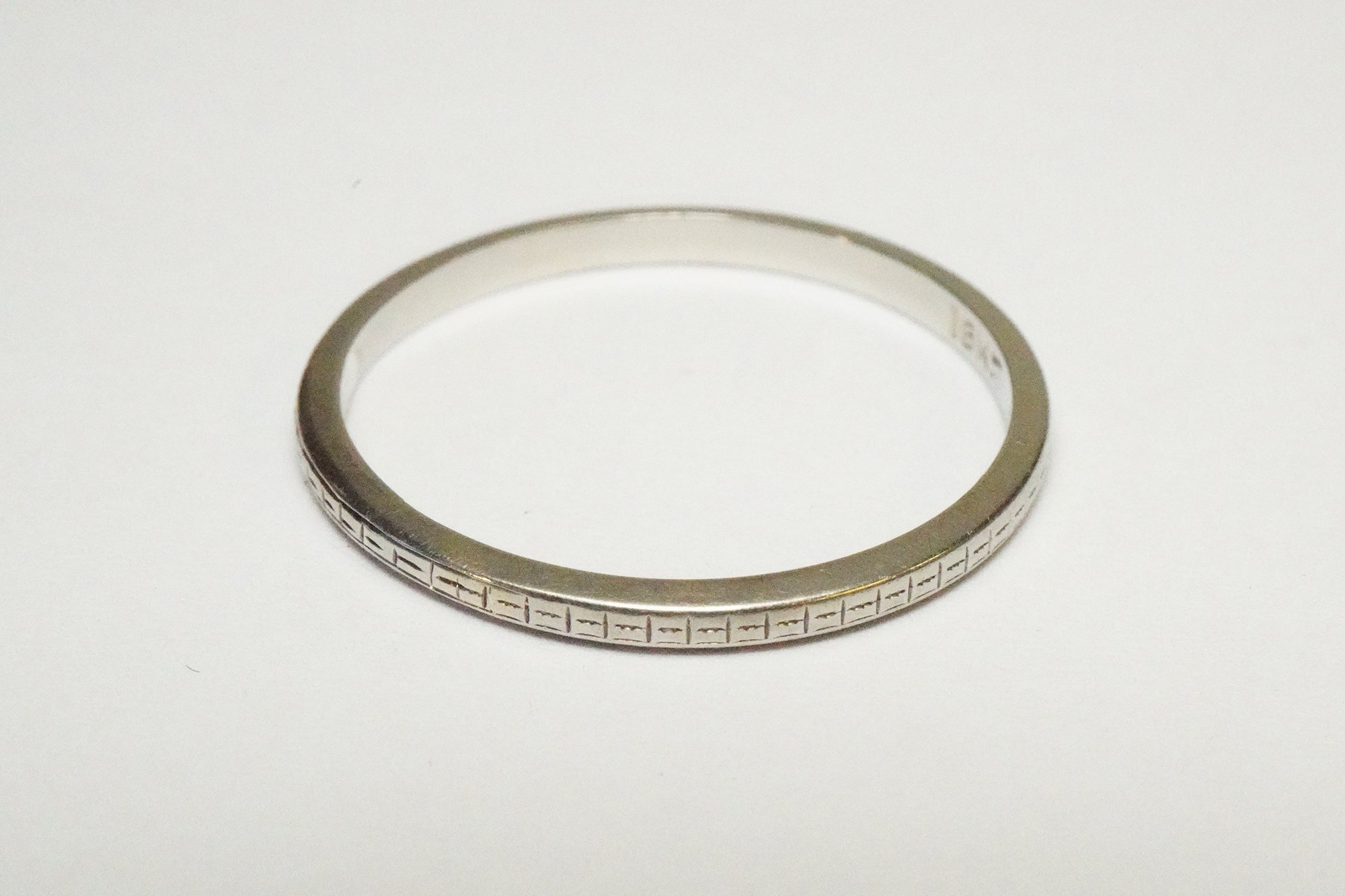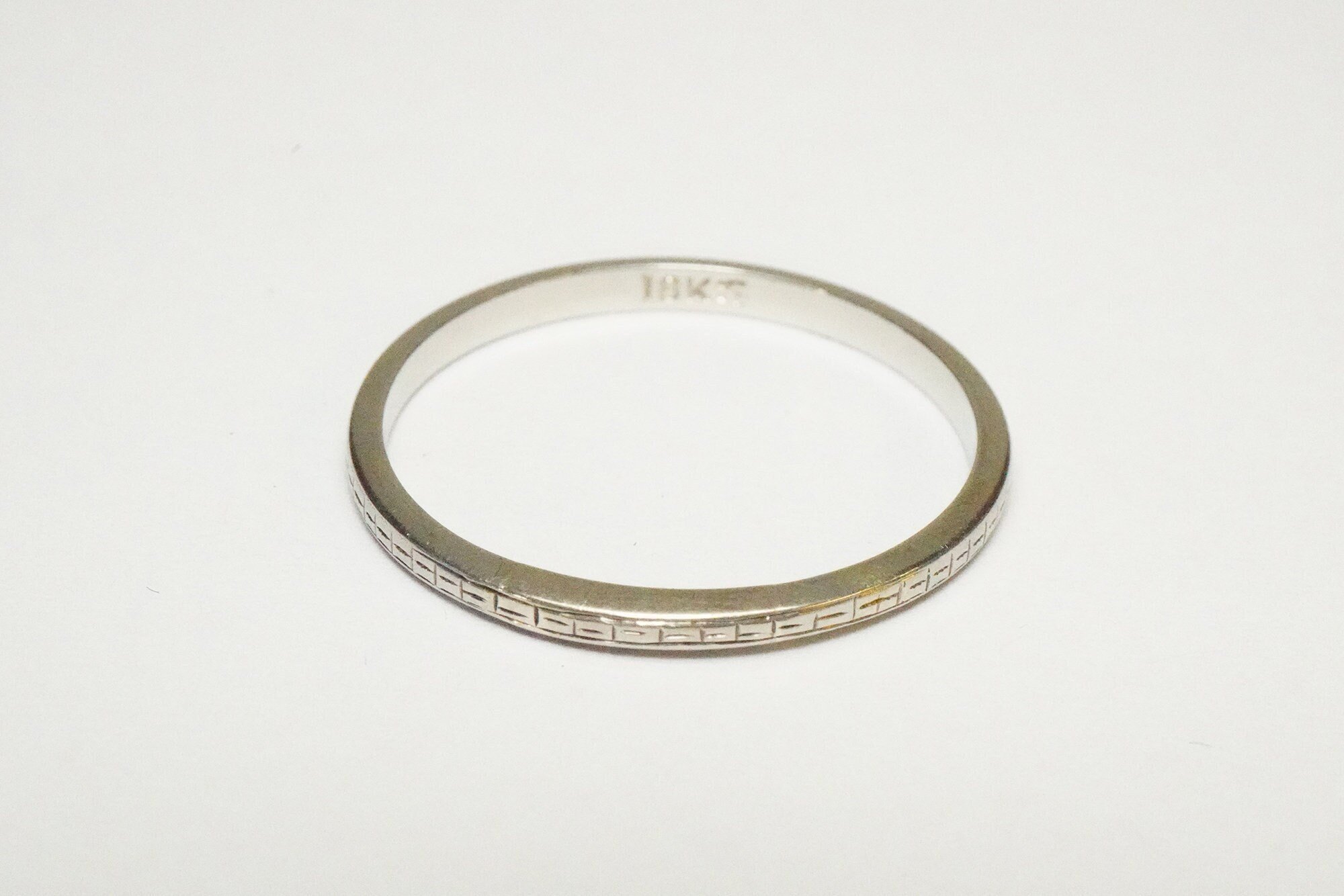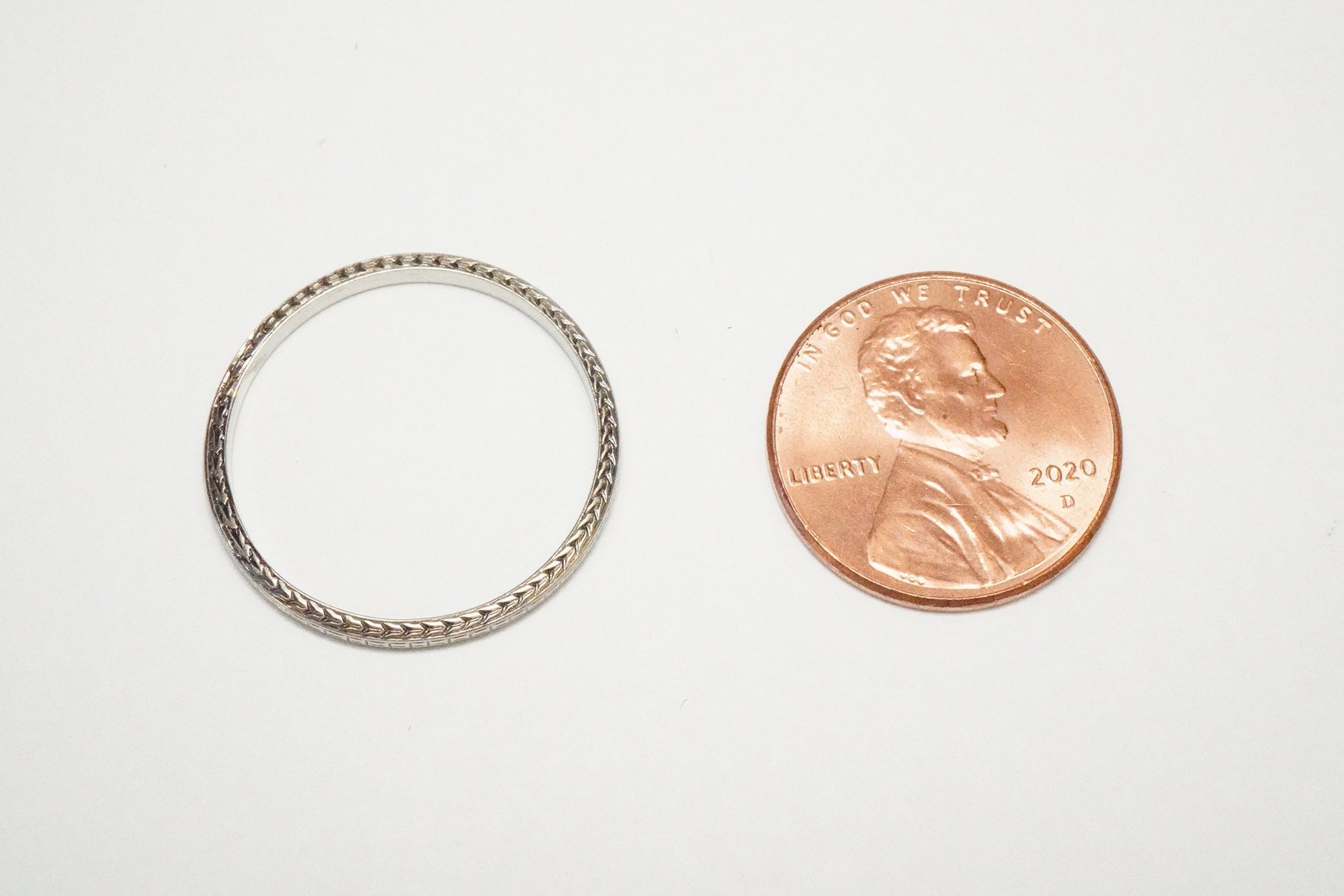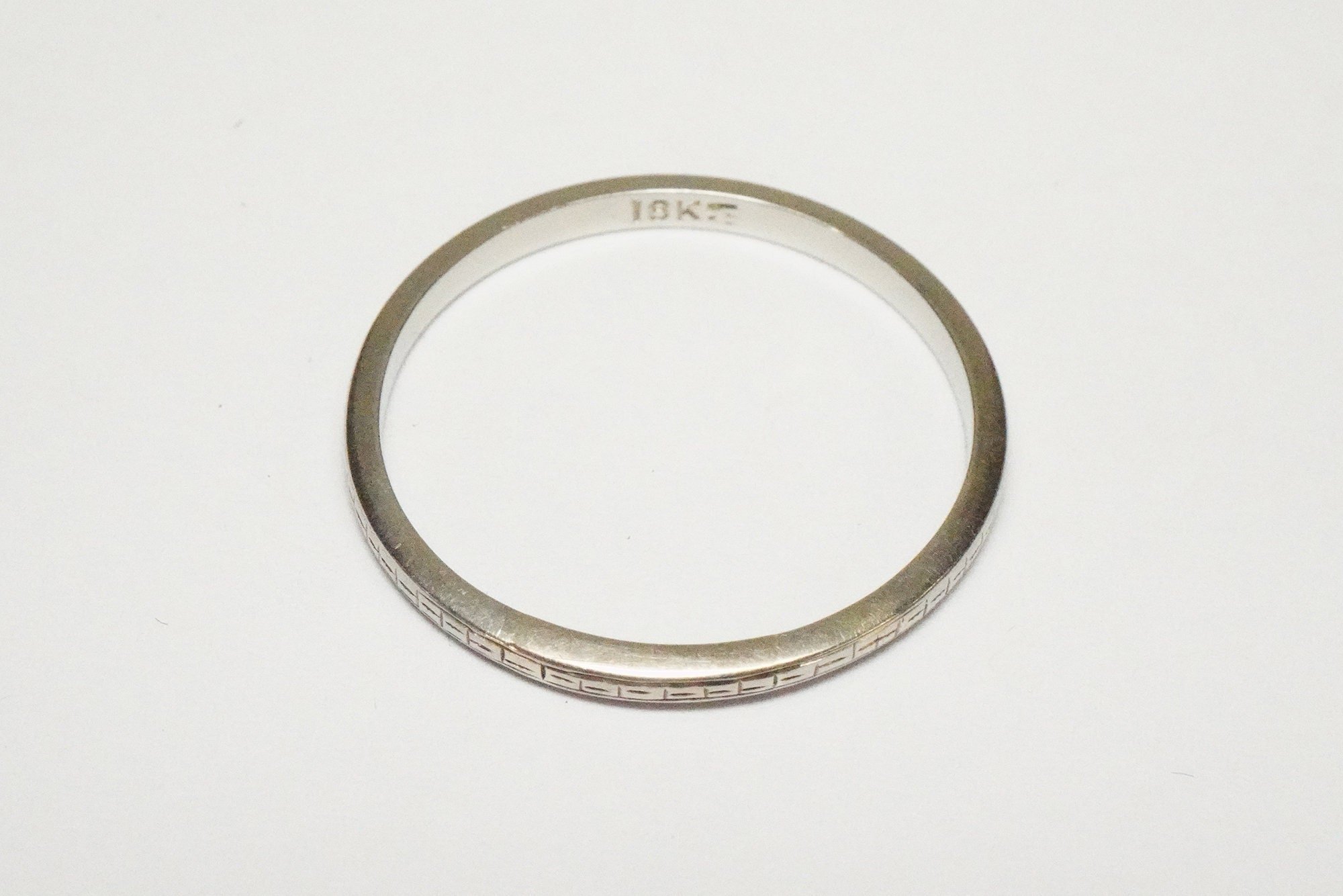 Antique 18k White Gold Engraved Pattern Band - Vintage White Gold Pattern Band - Rare, Size 9 1/2