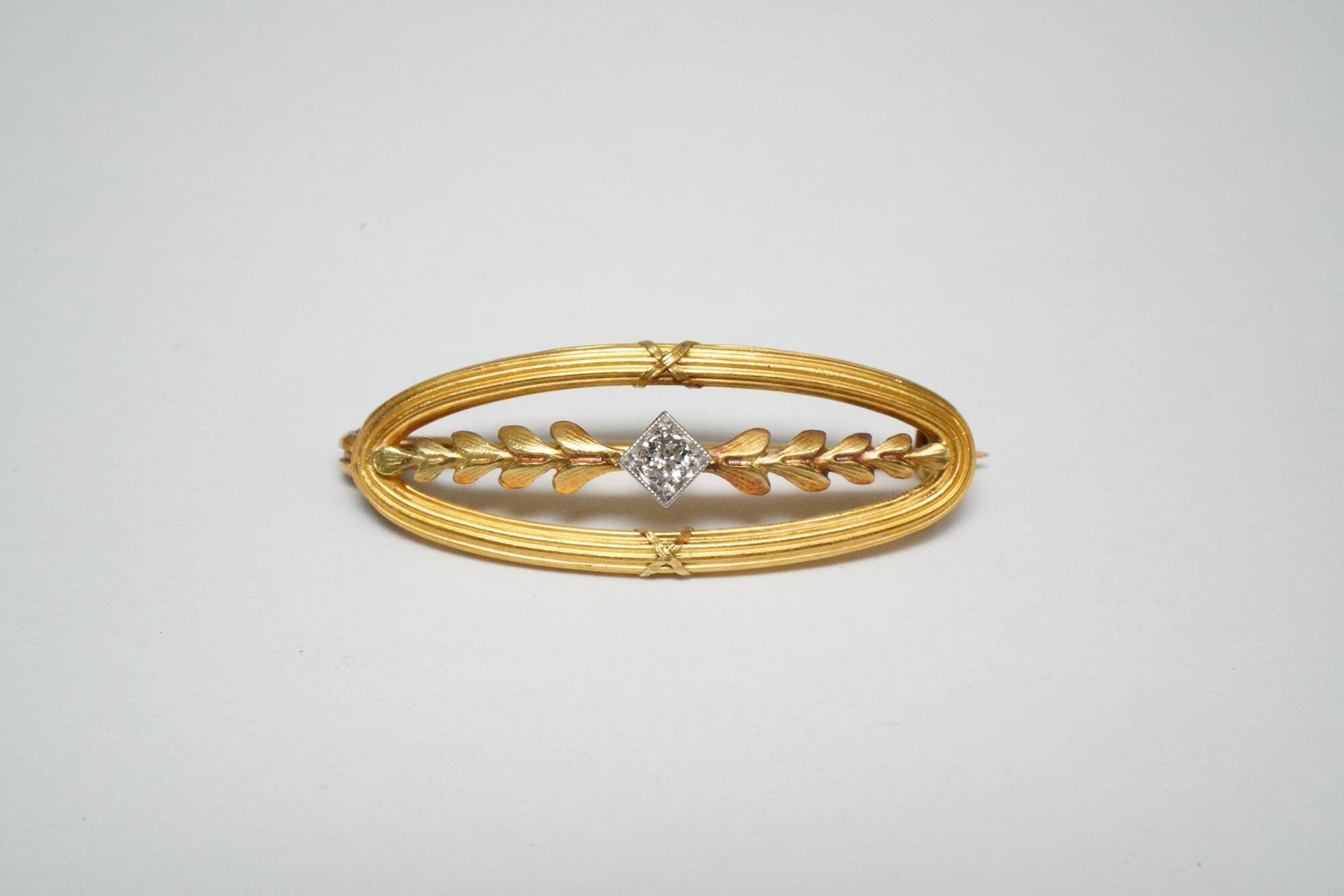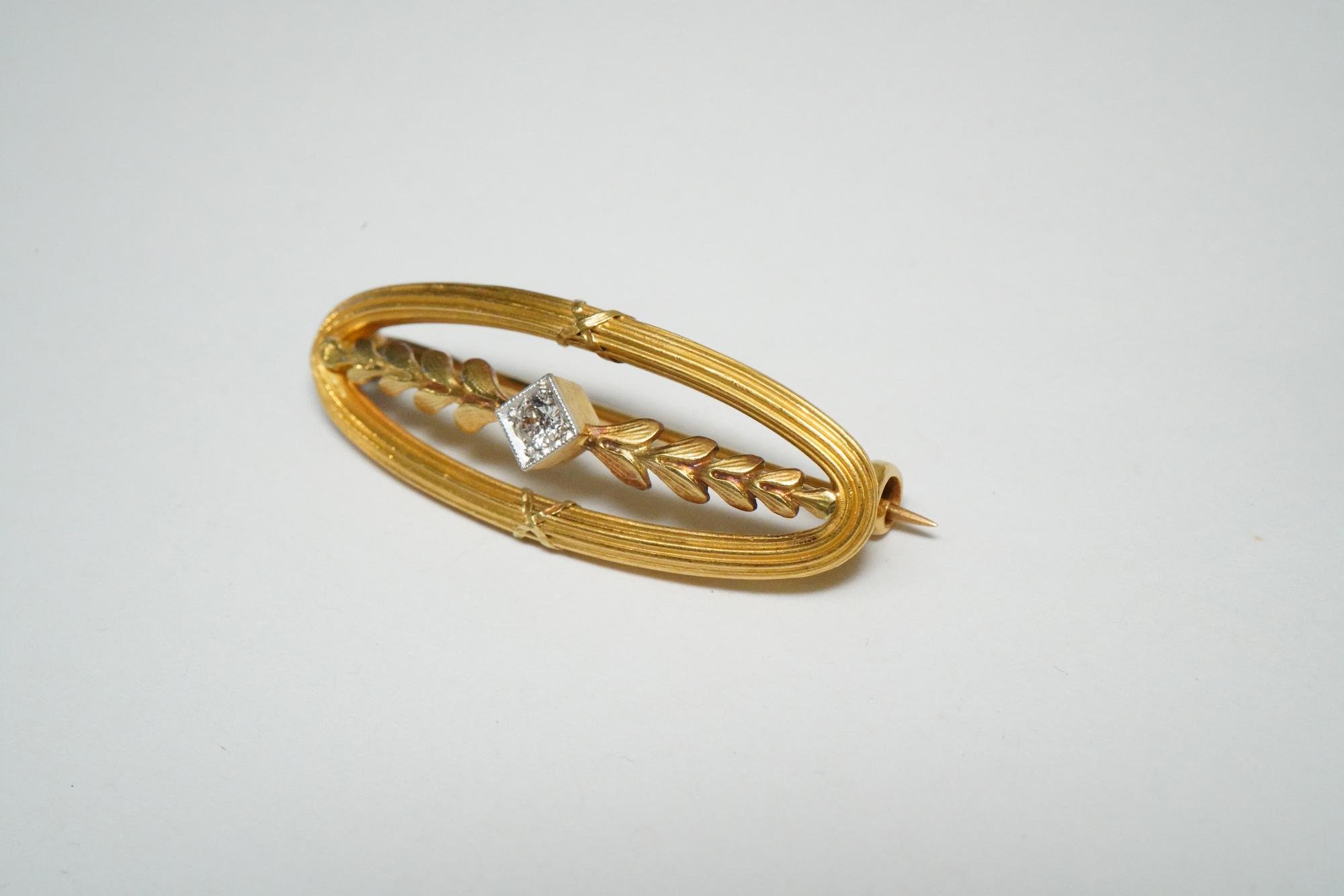 Antique 18kt Yellow Gold, Diamond Scarf Pin - Truly an Exquisite Old Brooch - Wreath Style
