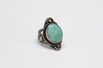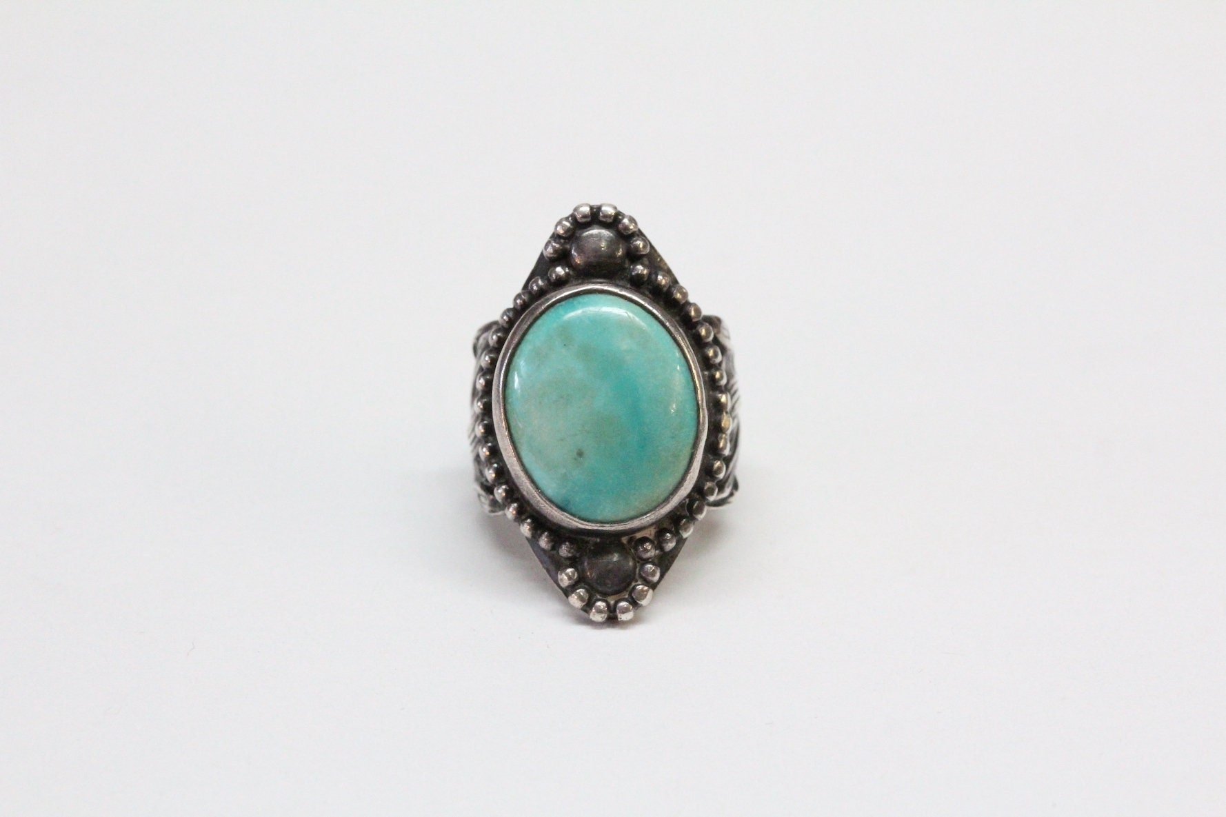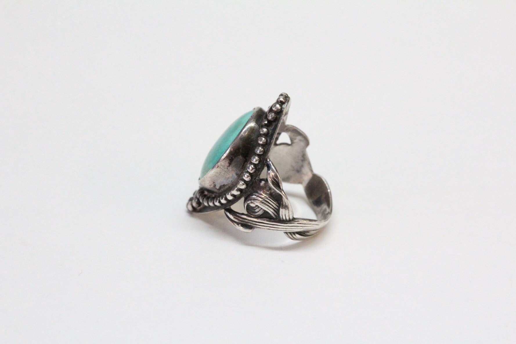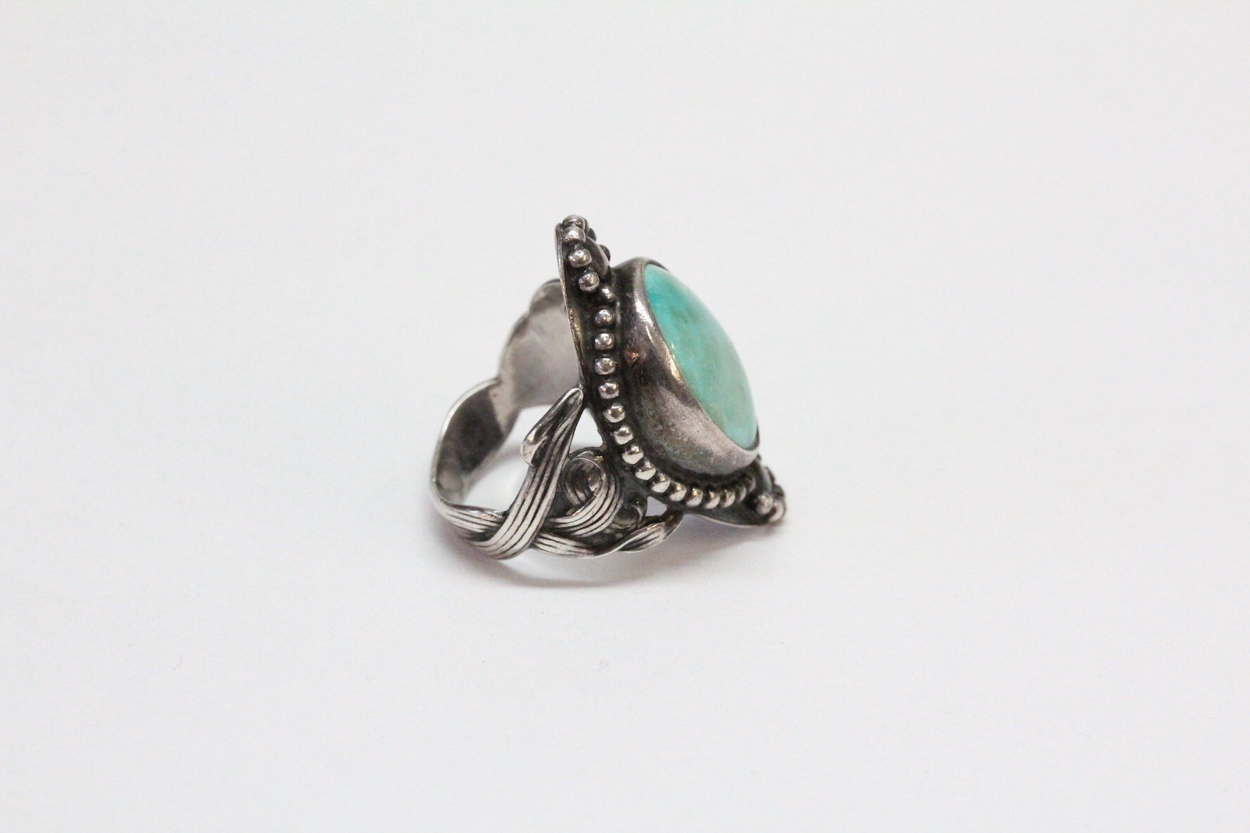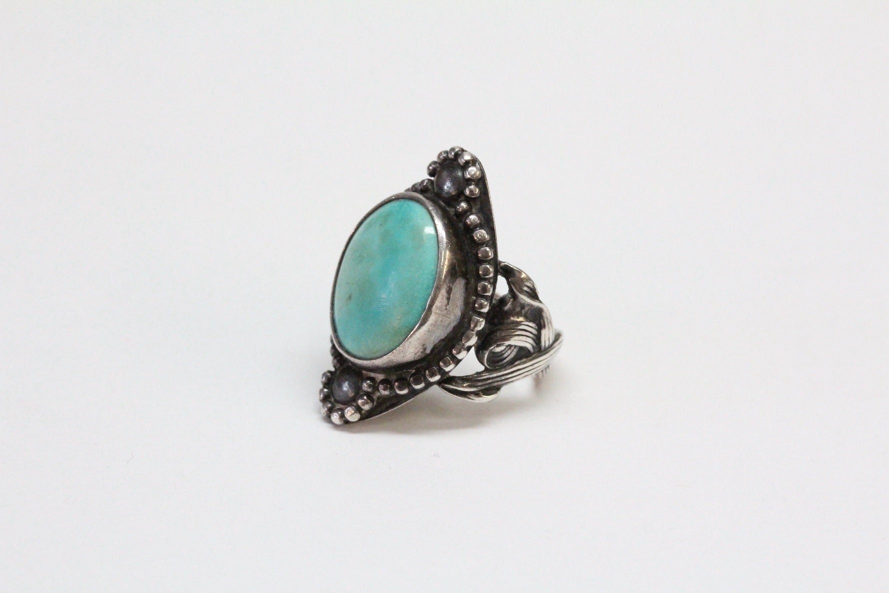 Antique Sterling Silver and Turquoise Ring - Lovely Art Nouveau Design Elements - Hand Fabricated
