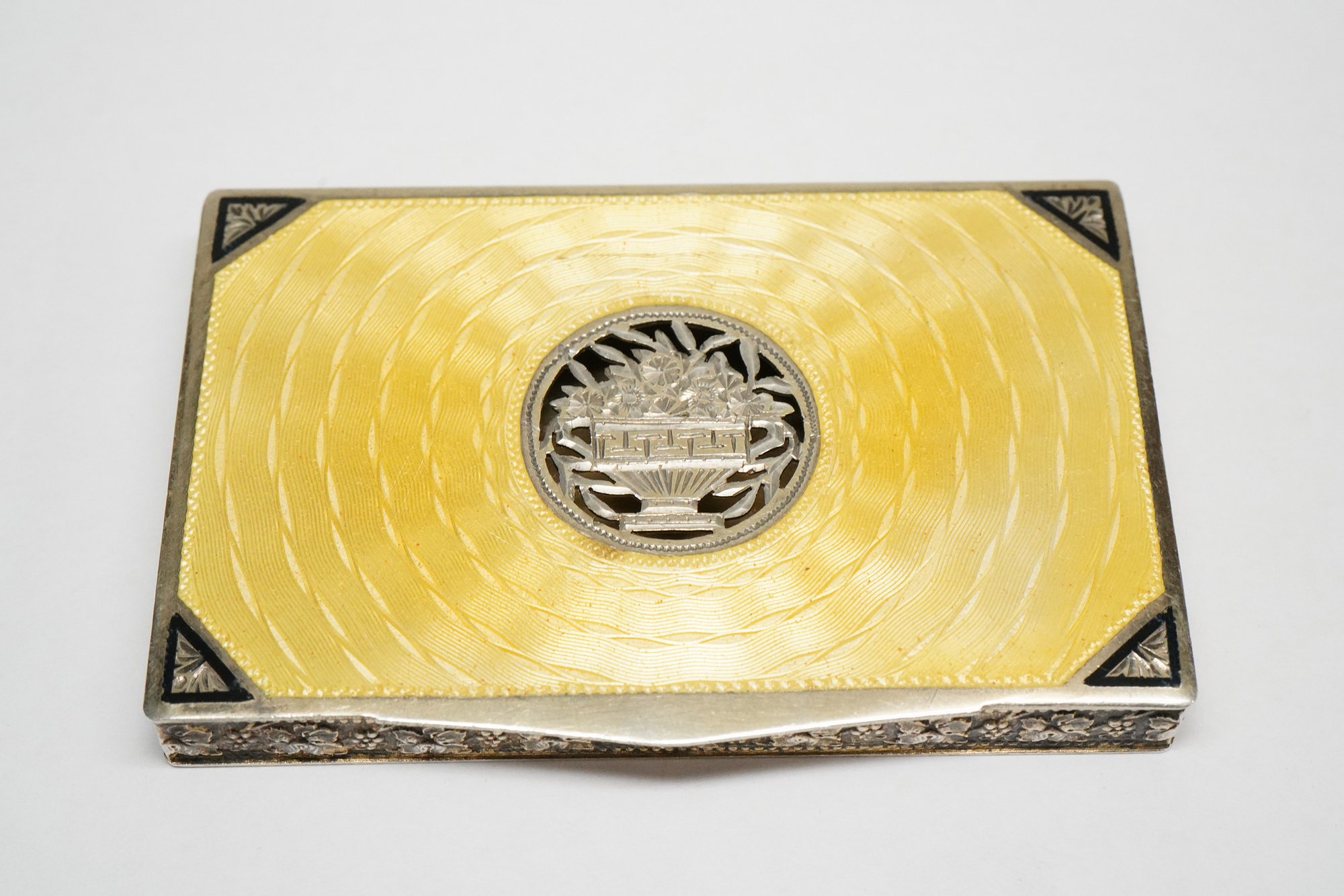Antique Sterling Silver, Guilloché Enamel Hinged Box