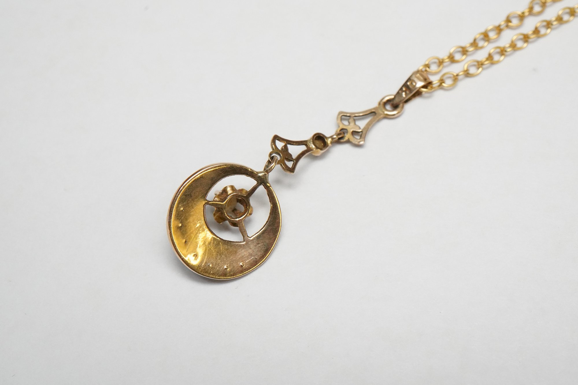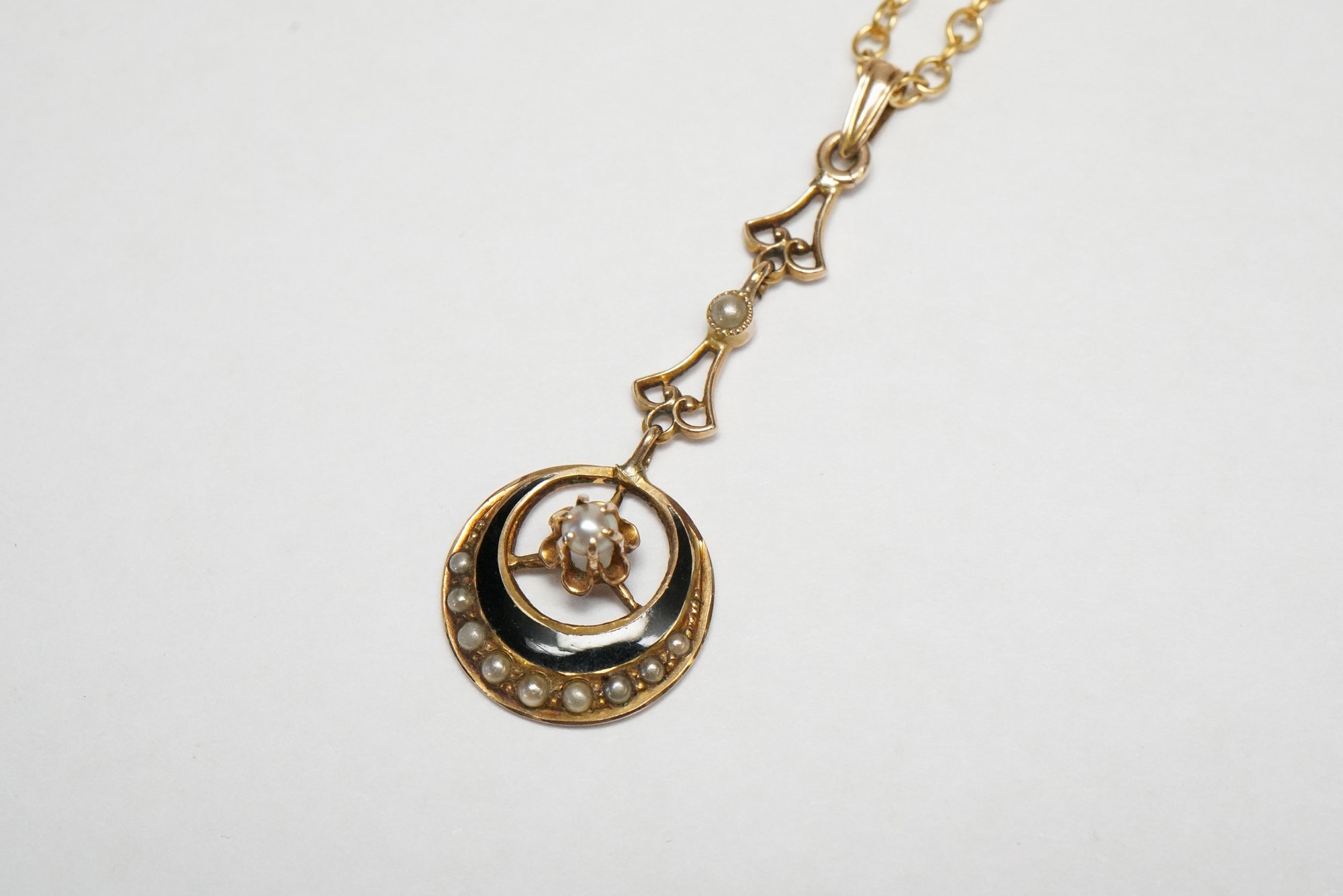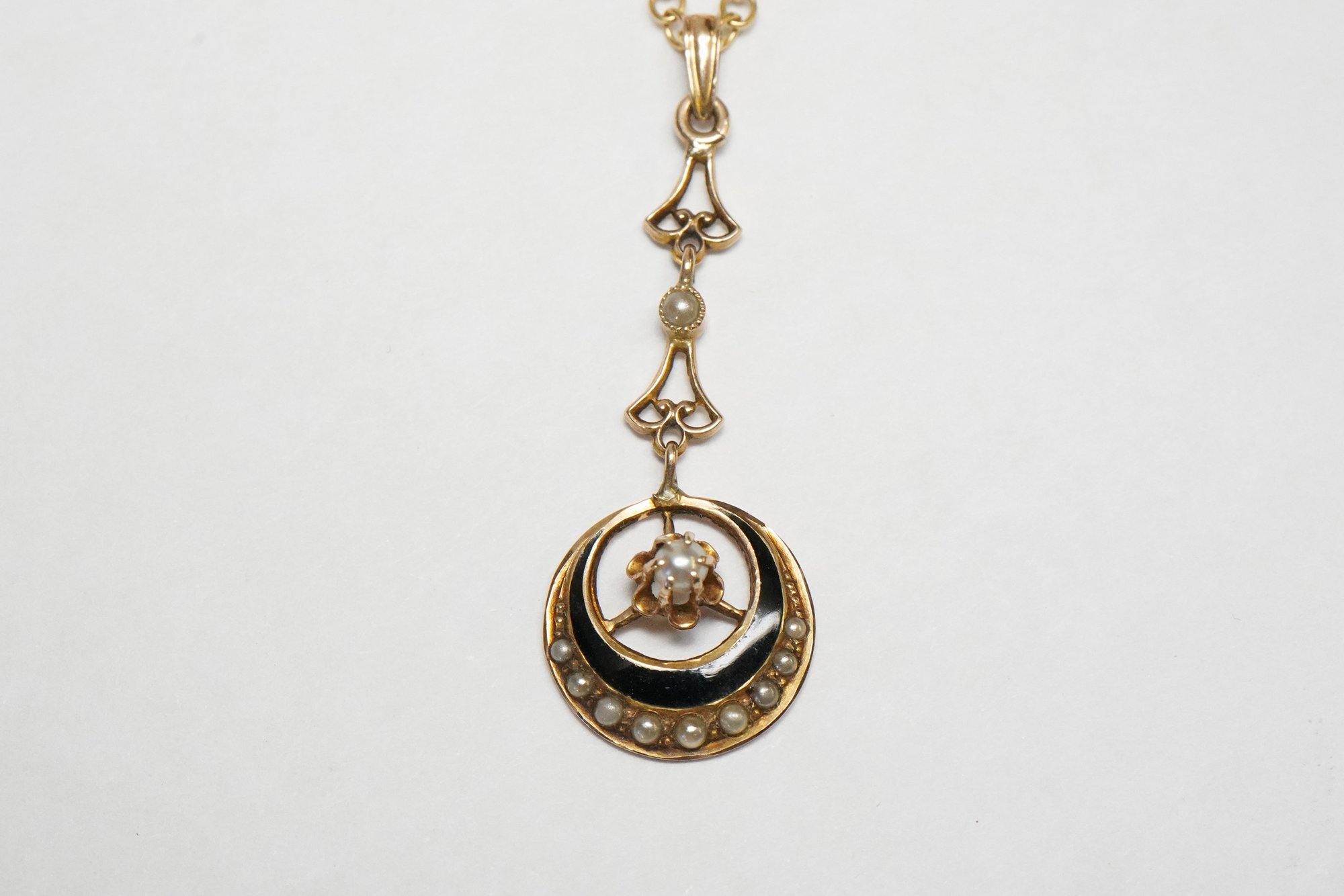 Antique Victorian 10k Gold, Seed Pearl, and Enamel Lavalier Pendant