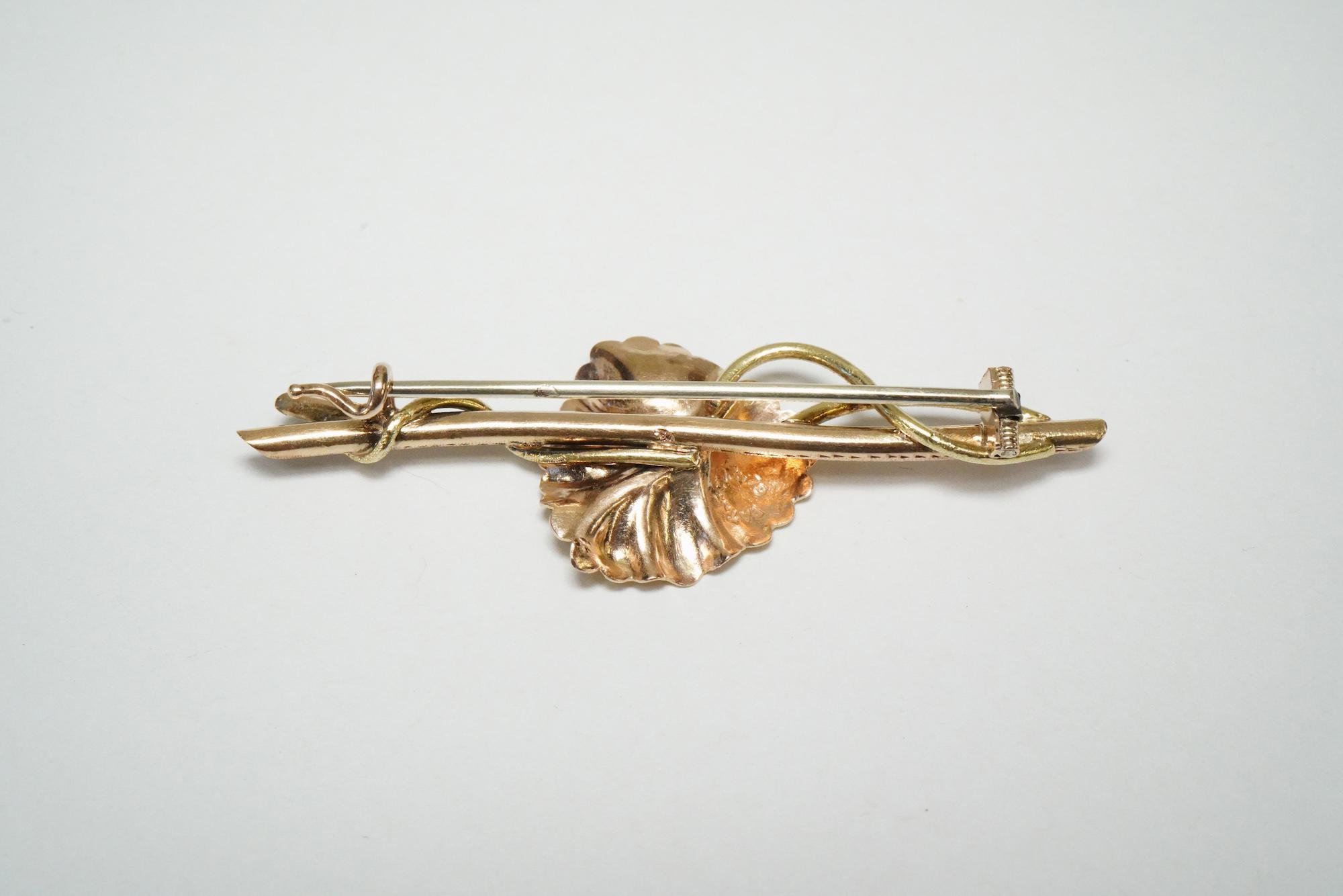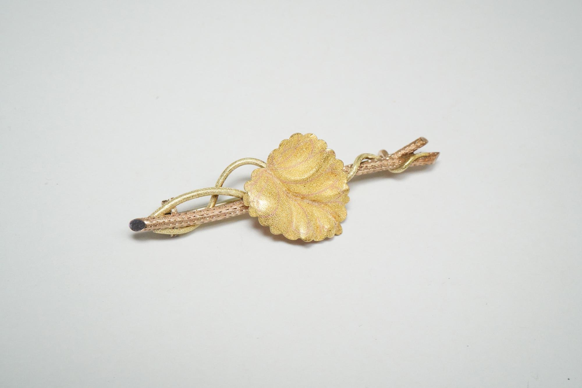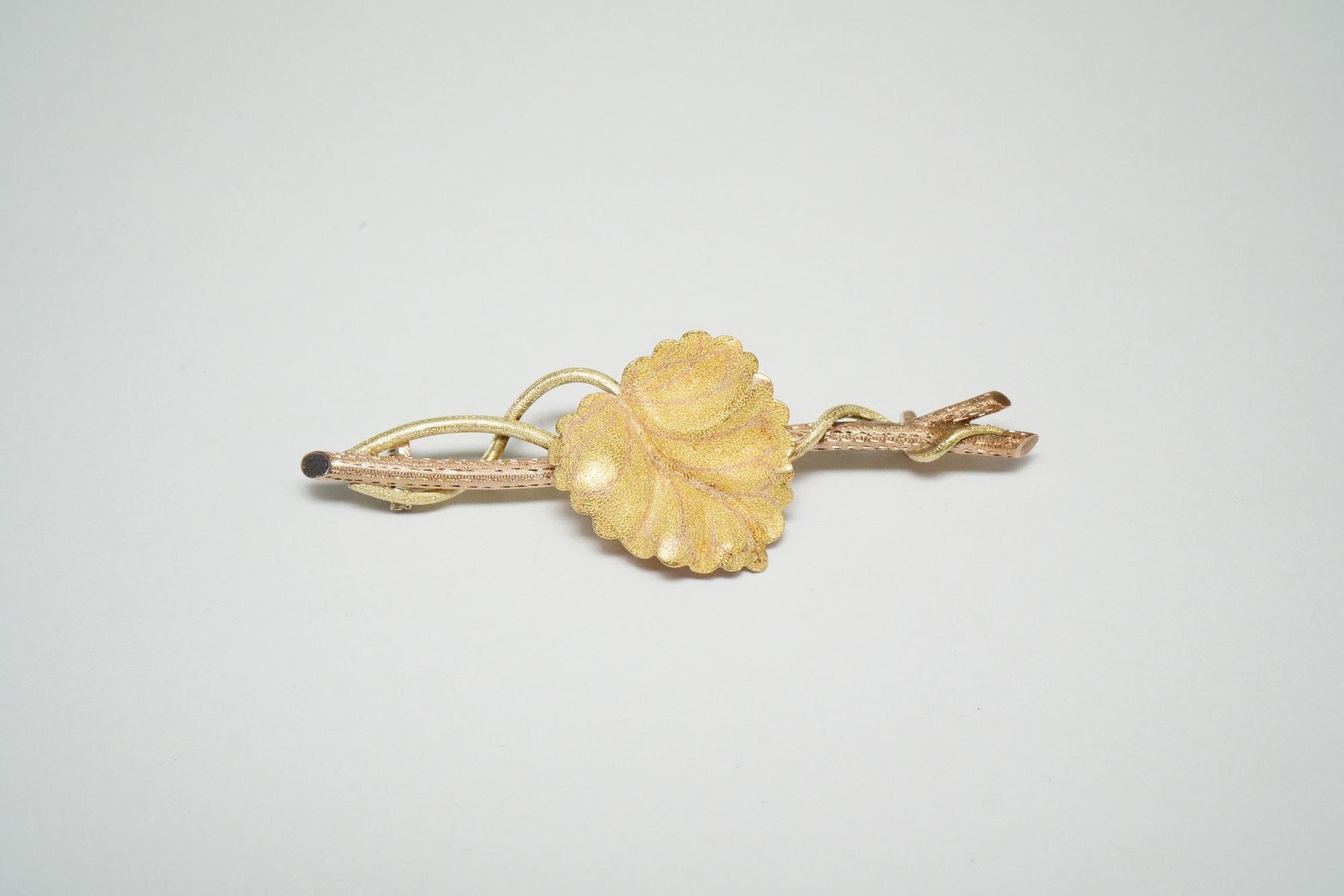 Antique, Victorian 14k Two-Tone Gold Grape Leaf and Branch Brooch - Exquisite Patina