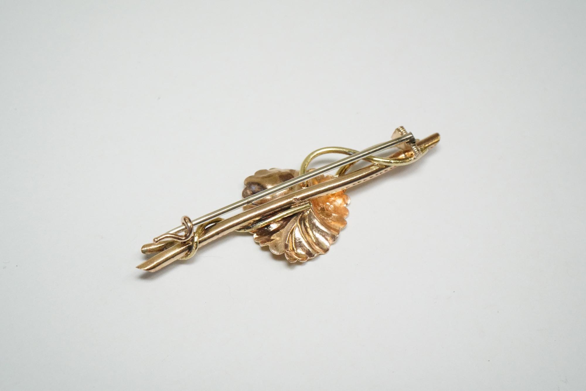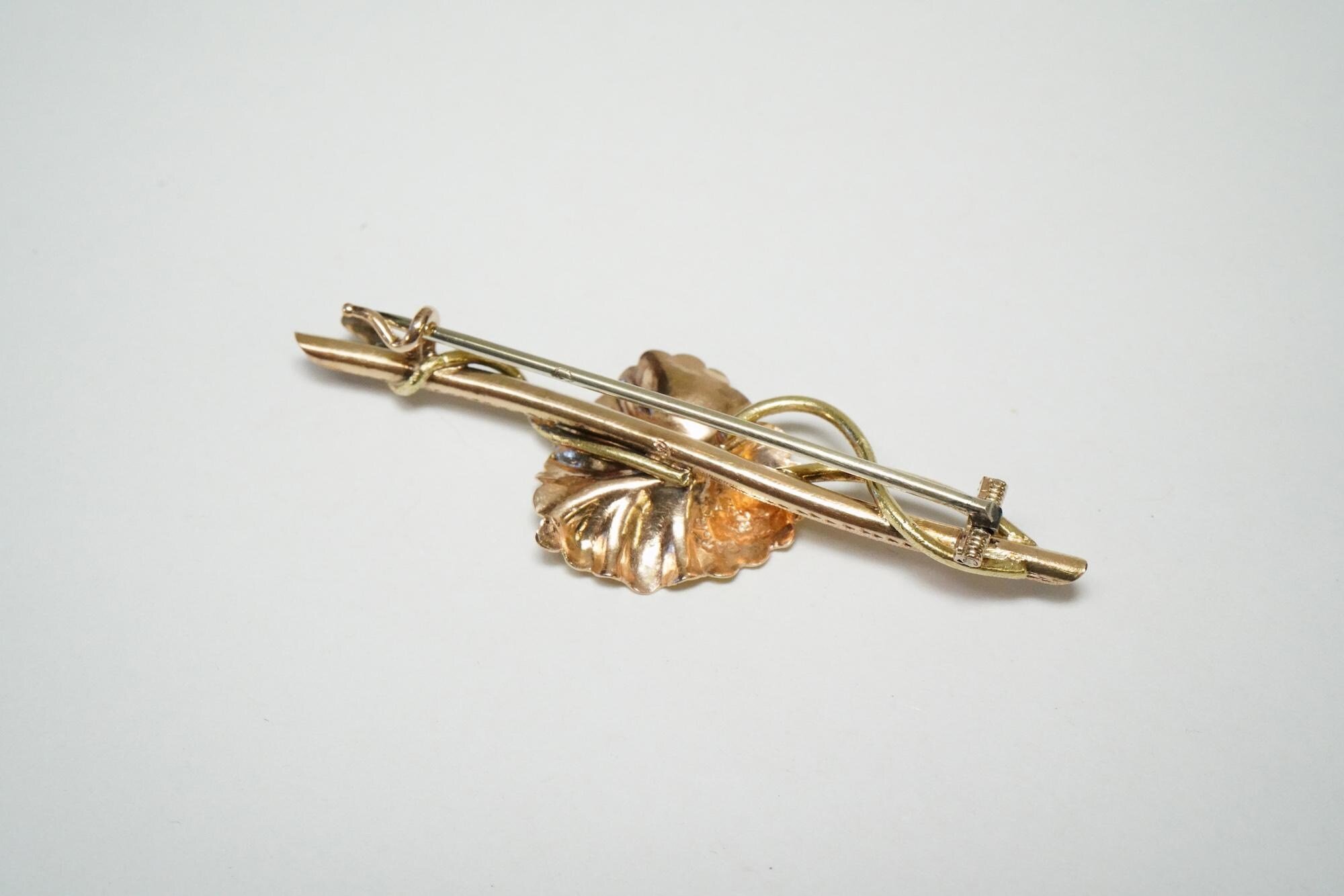 Material - 14k rose and green gold, as confirmed by acid test. Exquisite patina! NOTE: pin stem is nickel.