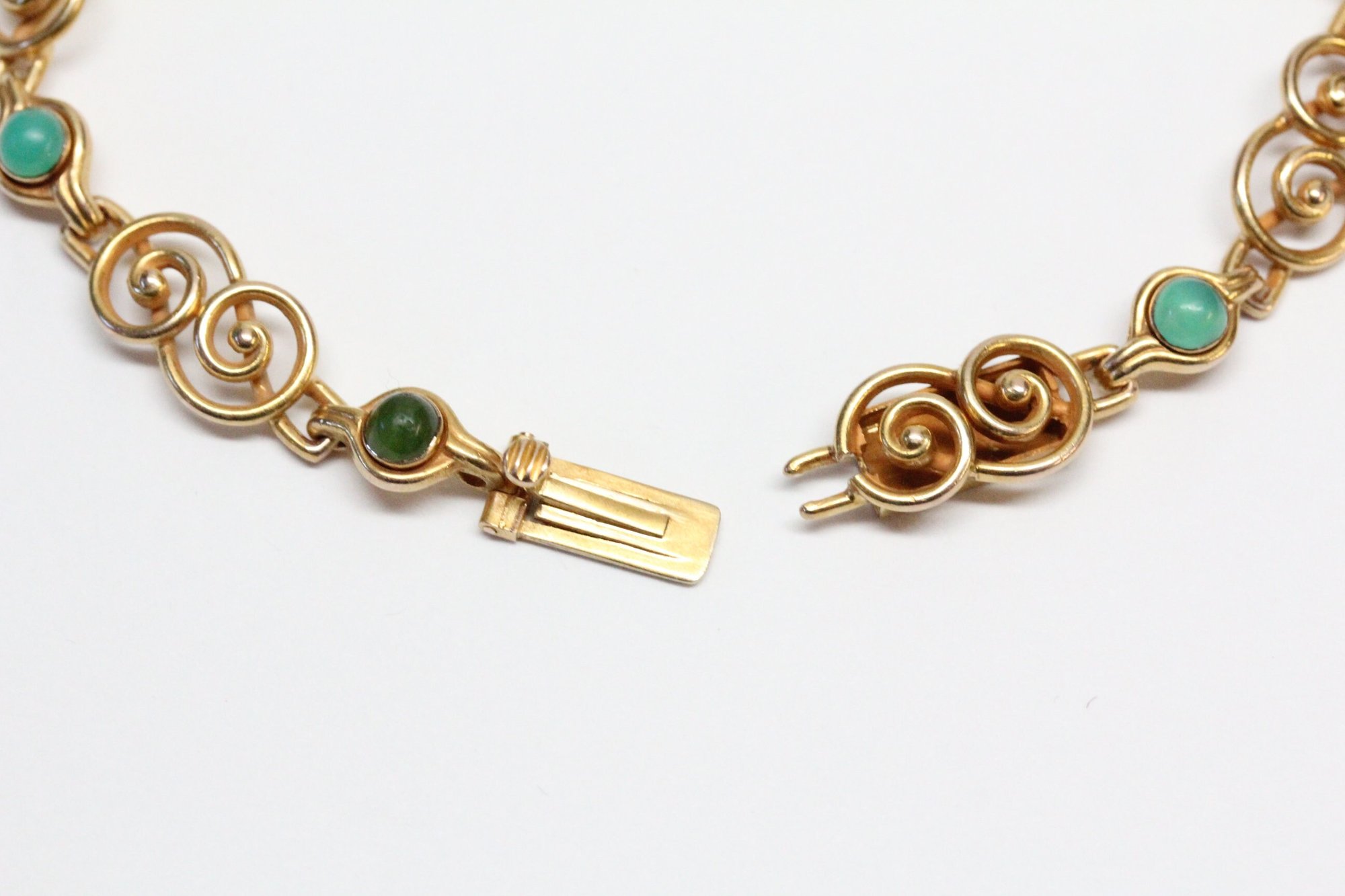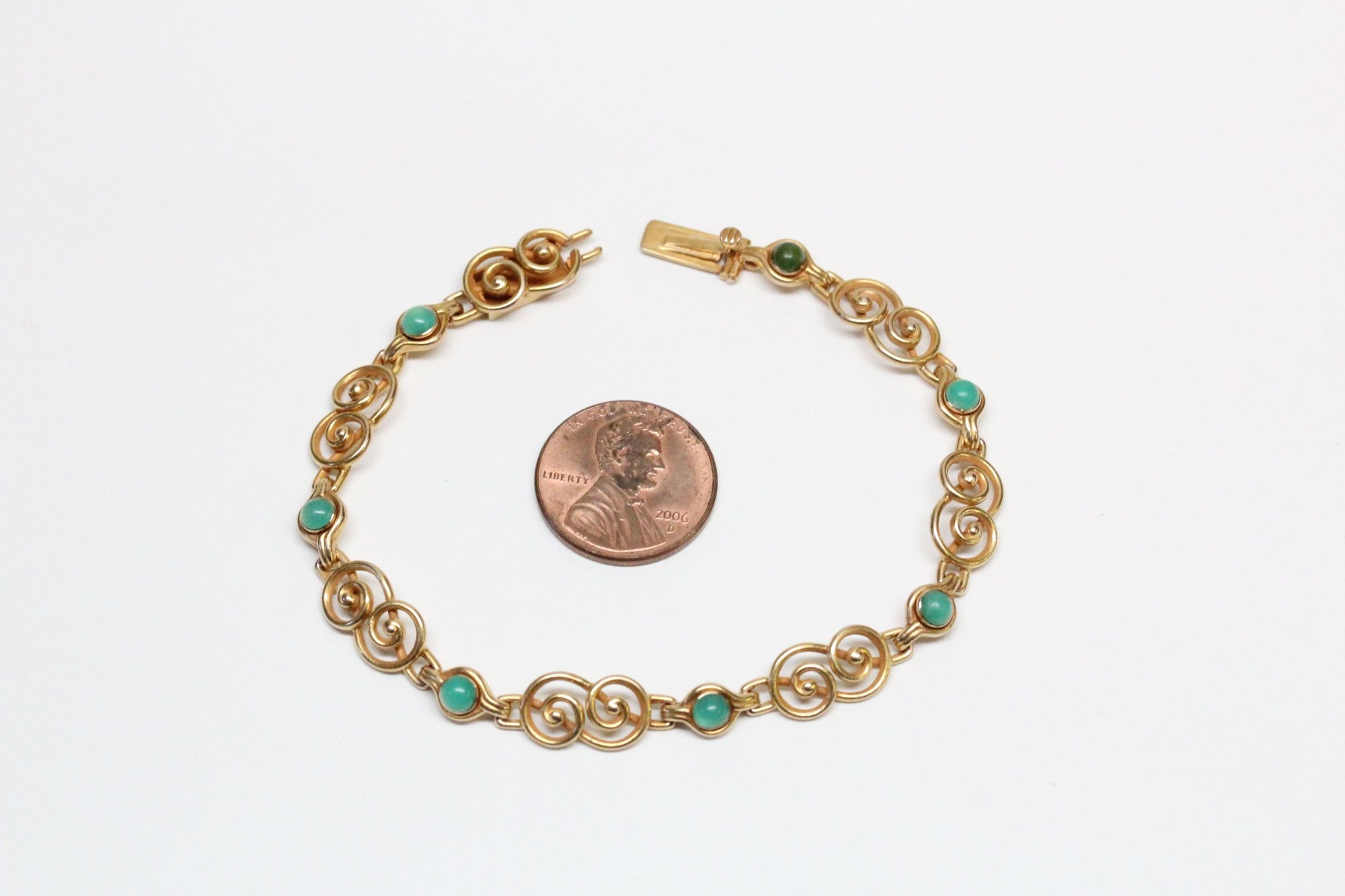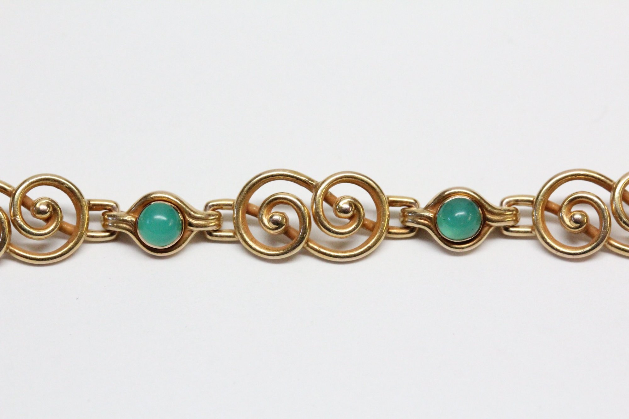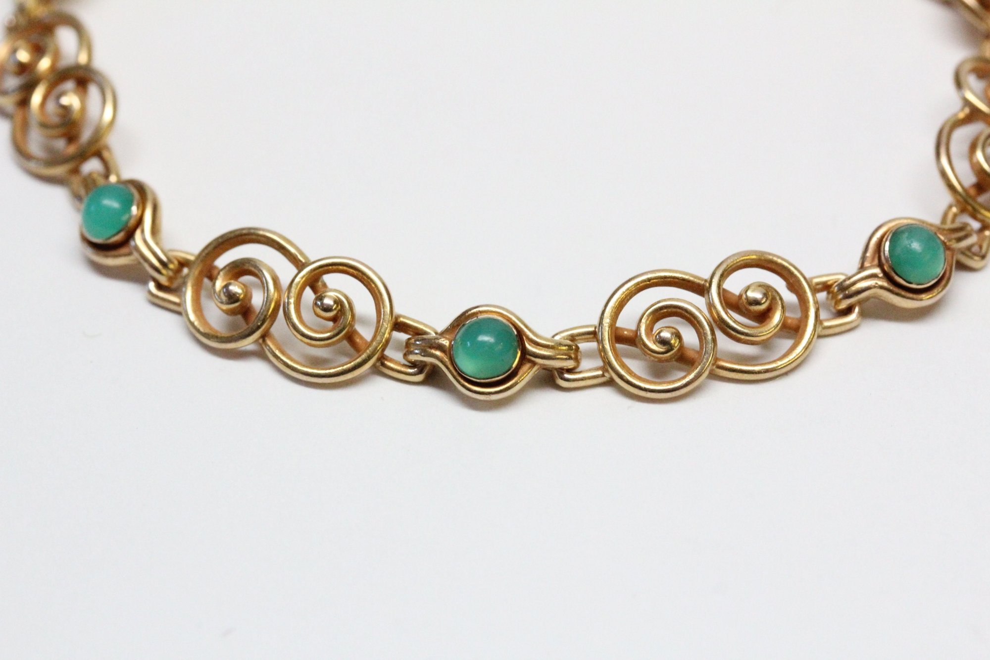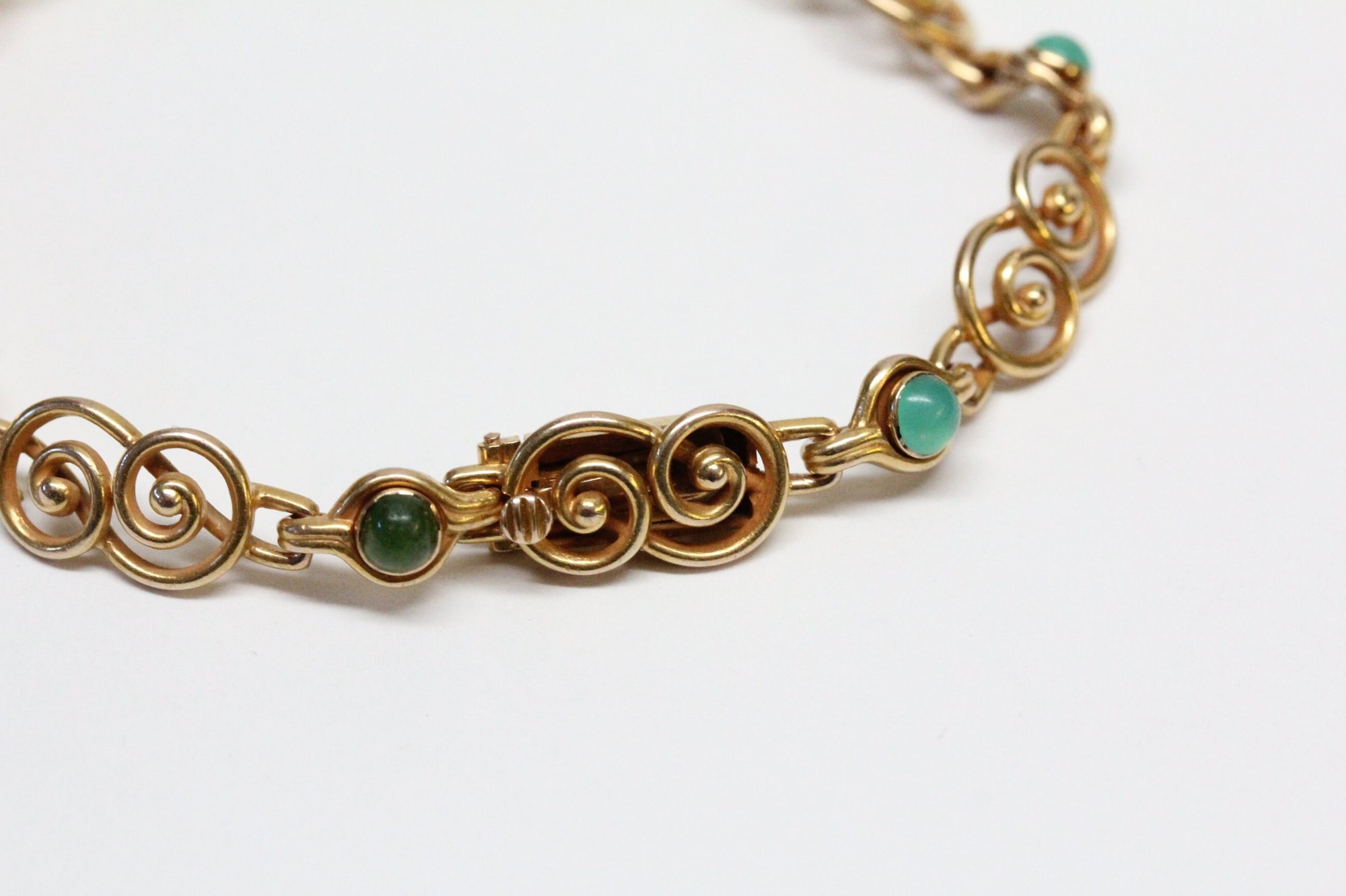 Art Deco 14k Gold, Chrysoprase Fancy Link Bracelet - Exquisite Quality and Design - Integrated Cl...