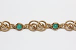 Stones - ~3.75mm chrysoprase cabochons. One stone, nearest the clasp, is likely a replacement.