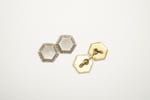 Material - Body of cuff links is 14k green gold, with platinum on fronts. Confirmed by acid test.