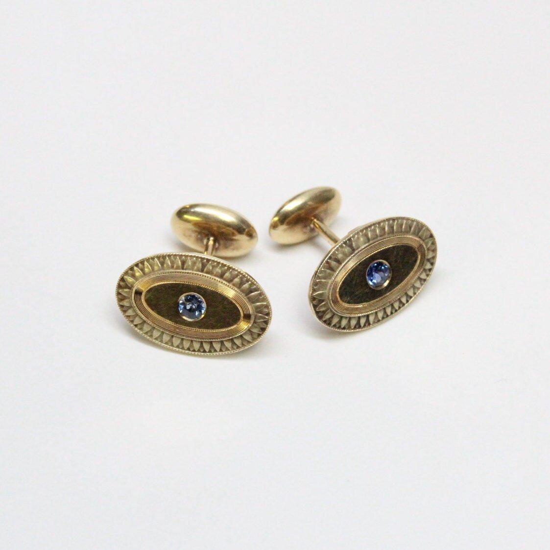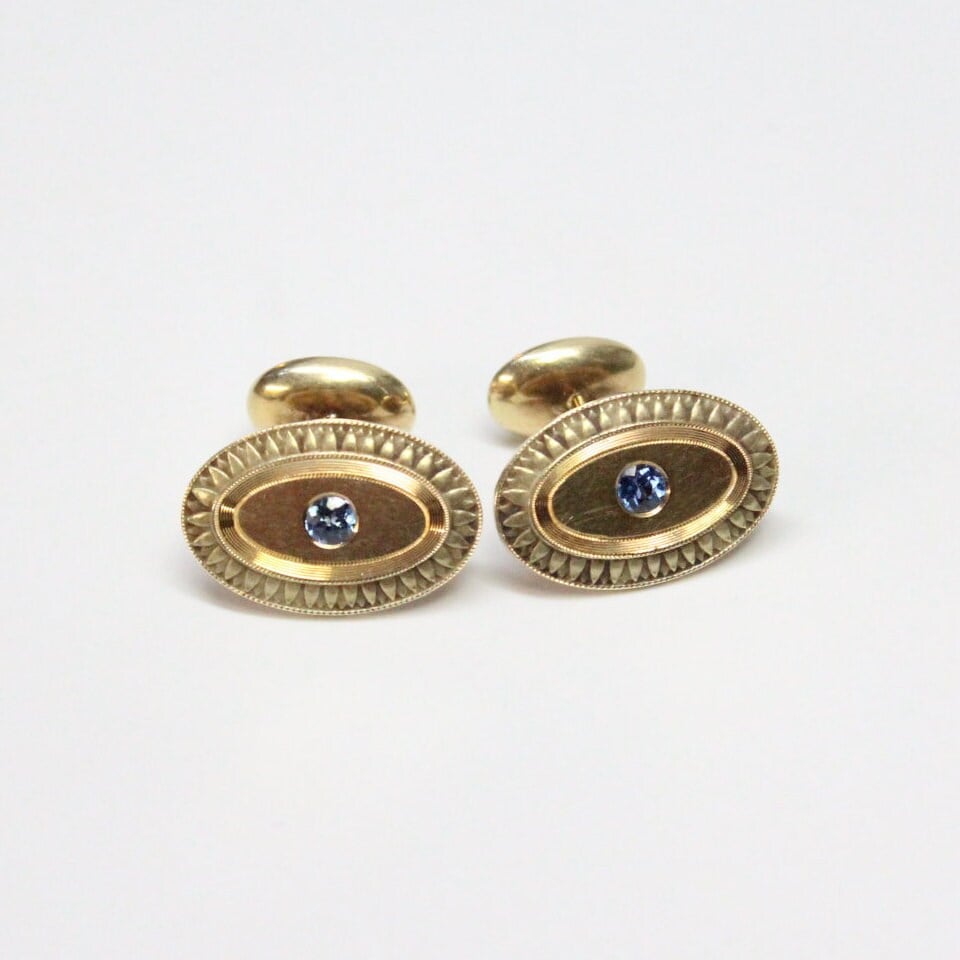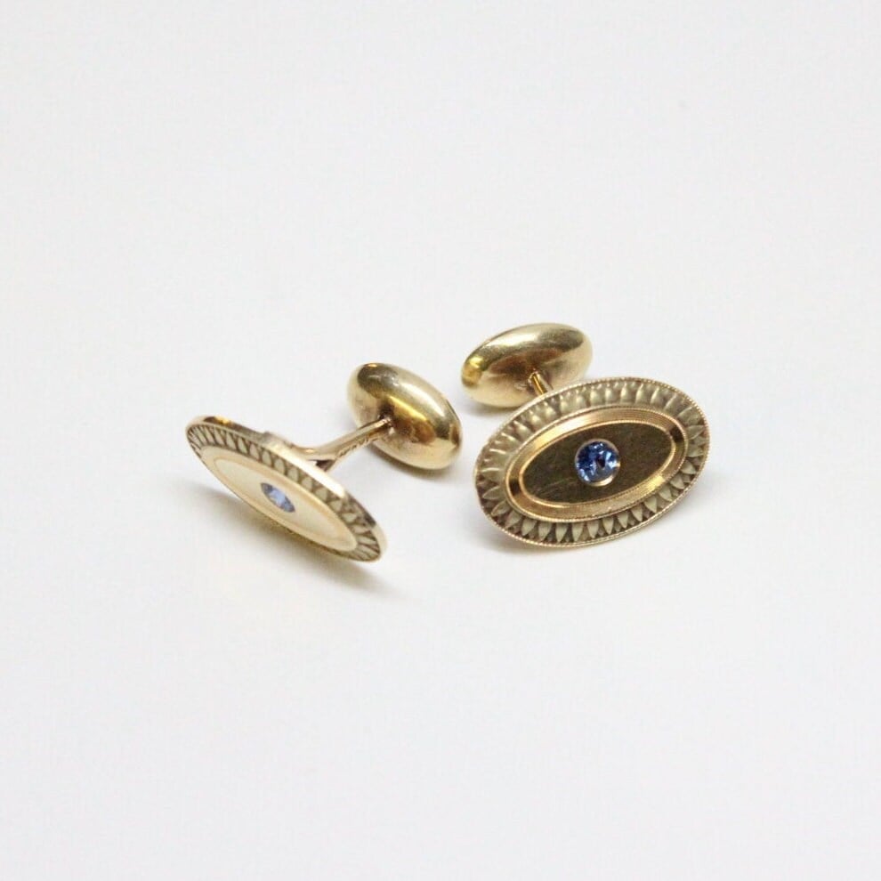 Art Deco 14k Green Gold, Sapphire Cuff Links