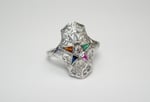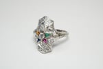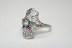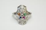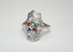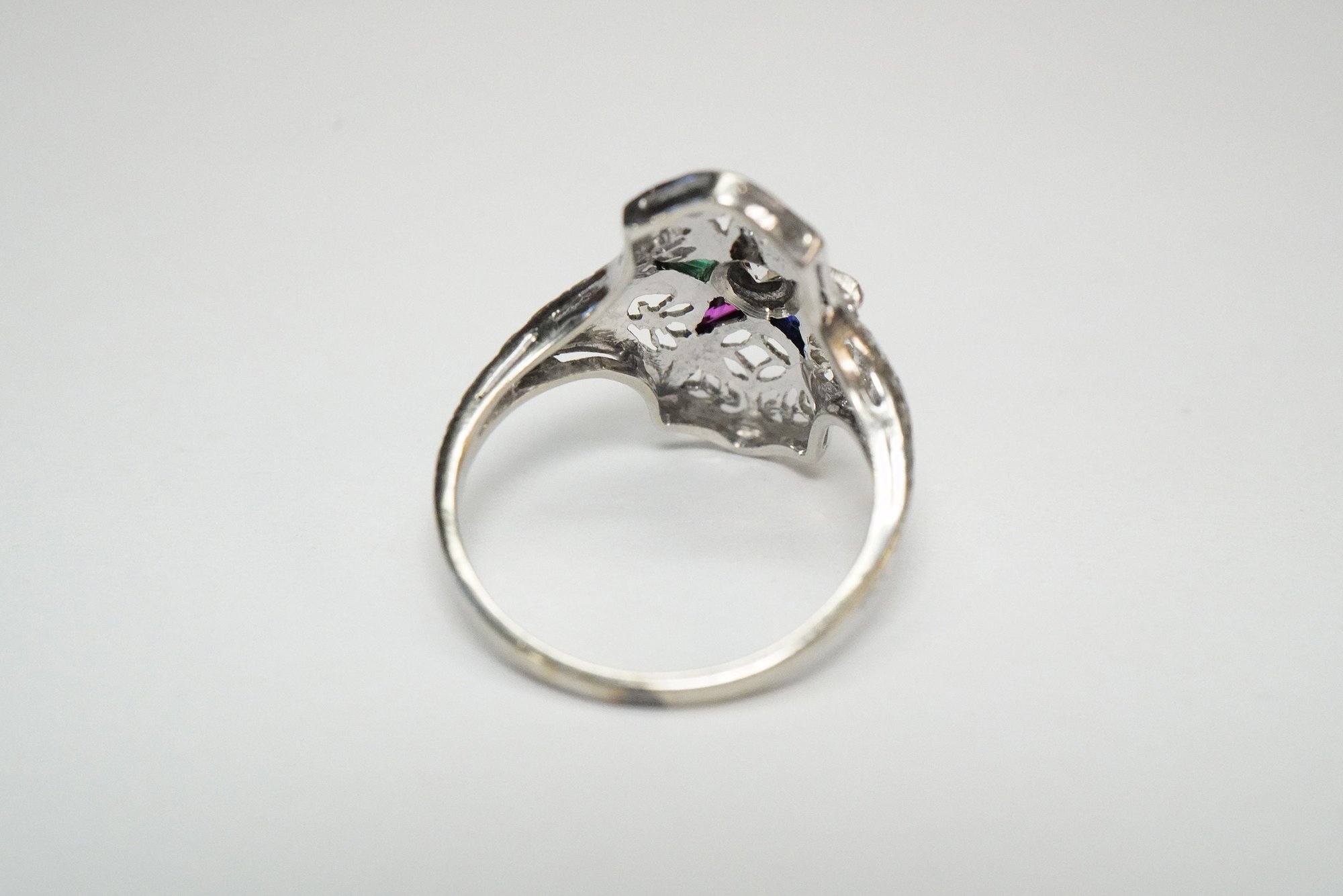 Accent stones - Various triangular cut synthetic accent stones. Original to the ring.