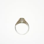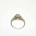 Material - 18k white gold, die-struck setting with hand-pierced filigree.