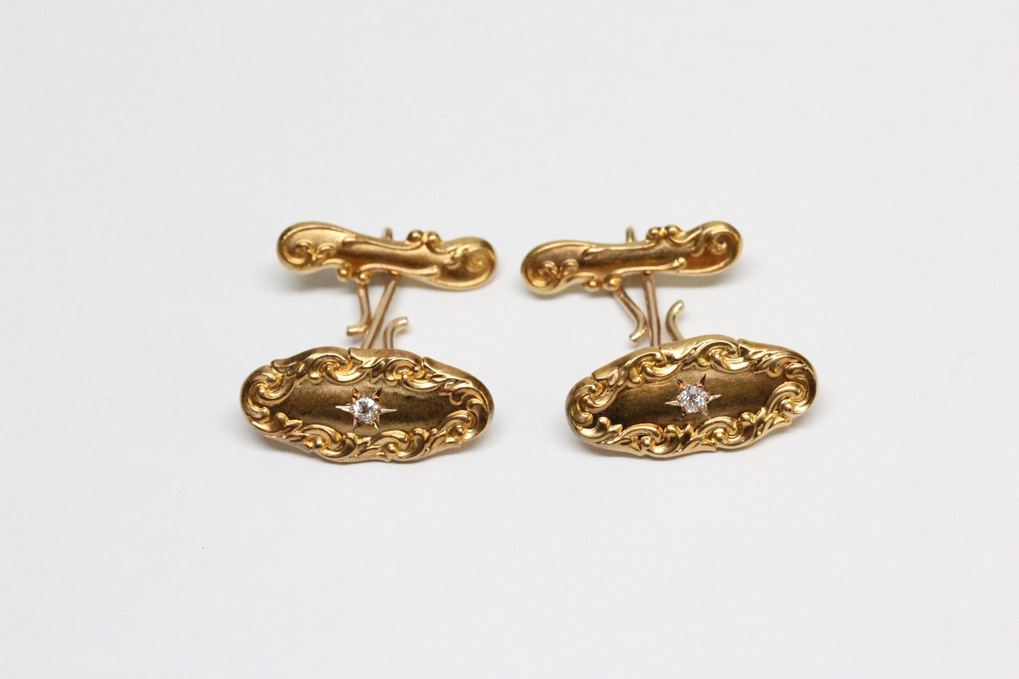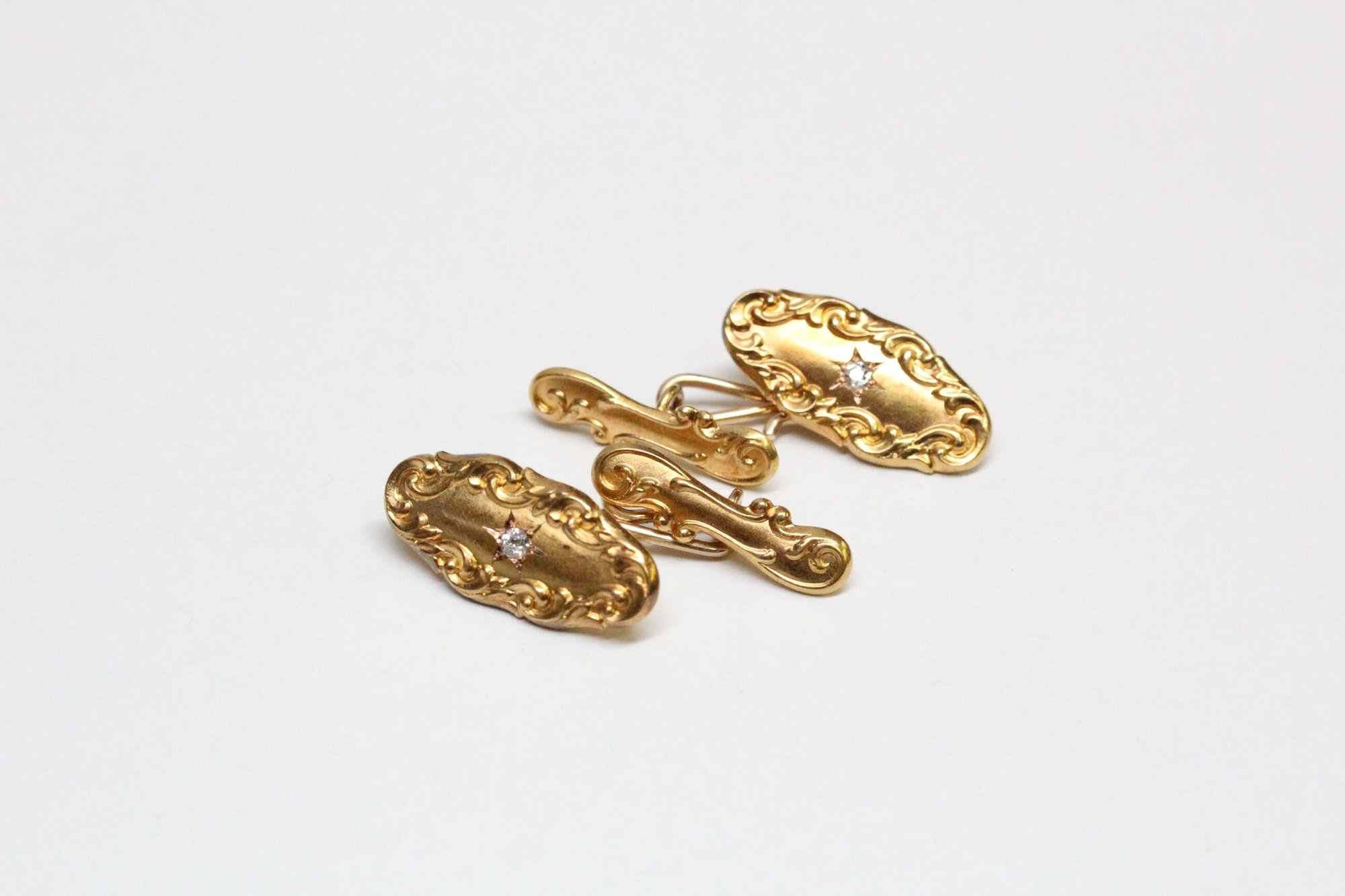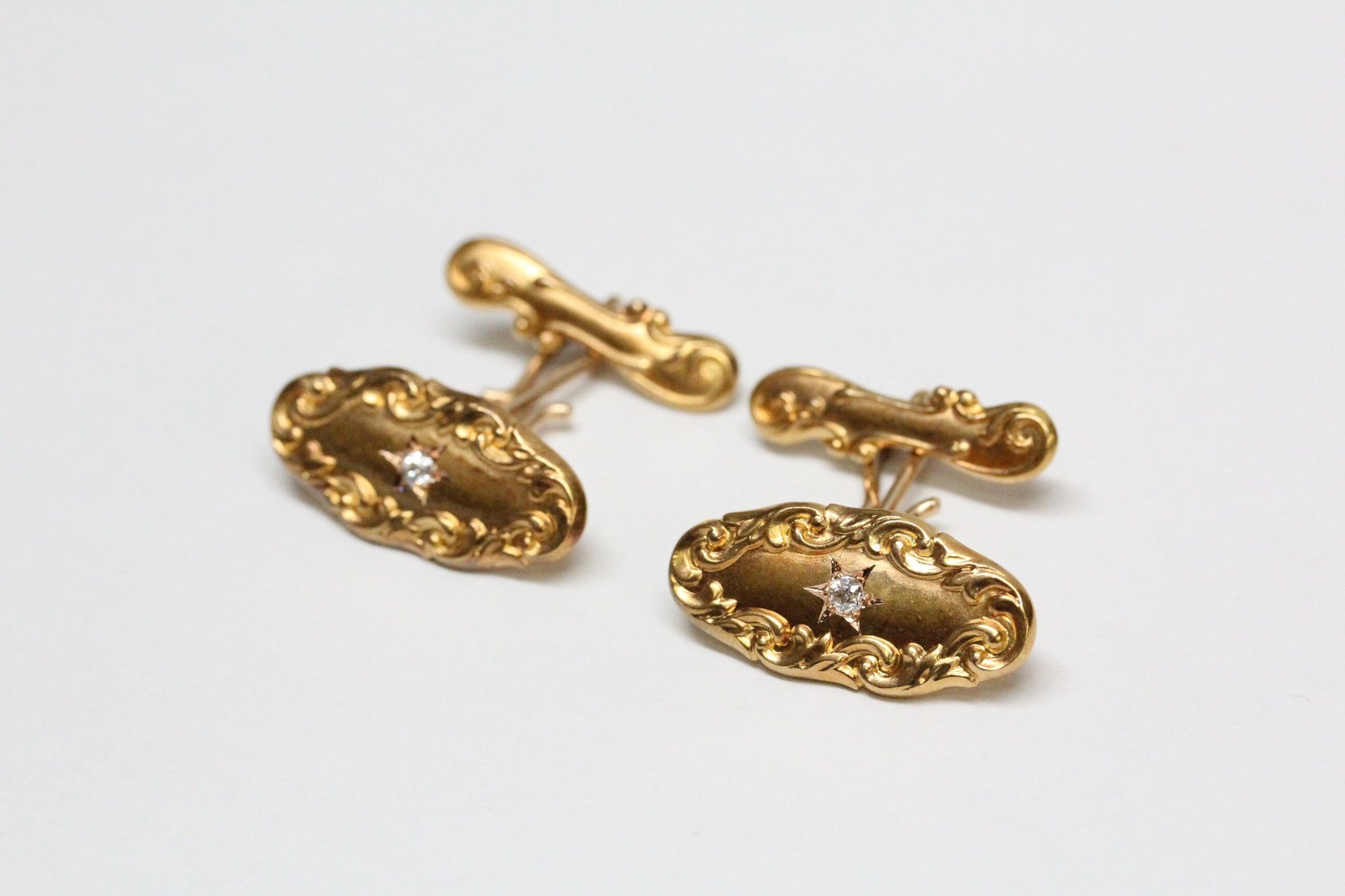 Art Nouveau 14k Gold, Diamond Cuff Links - Old European Cut Diamonds - Depletion Gilded