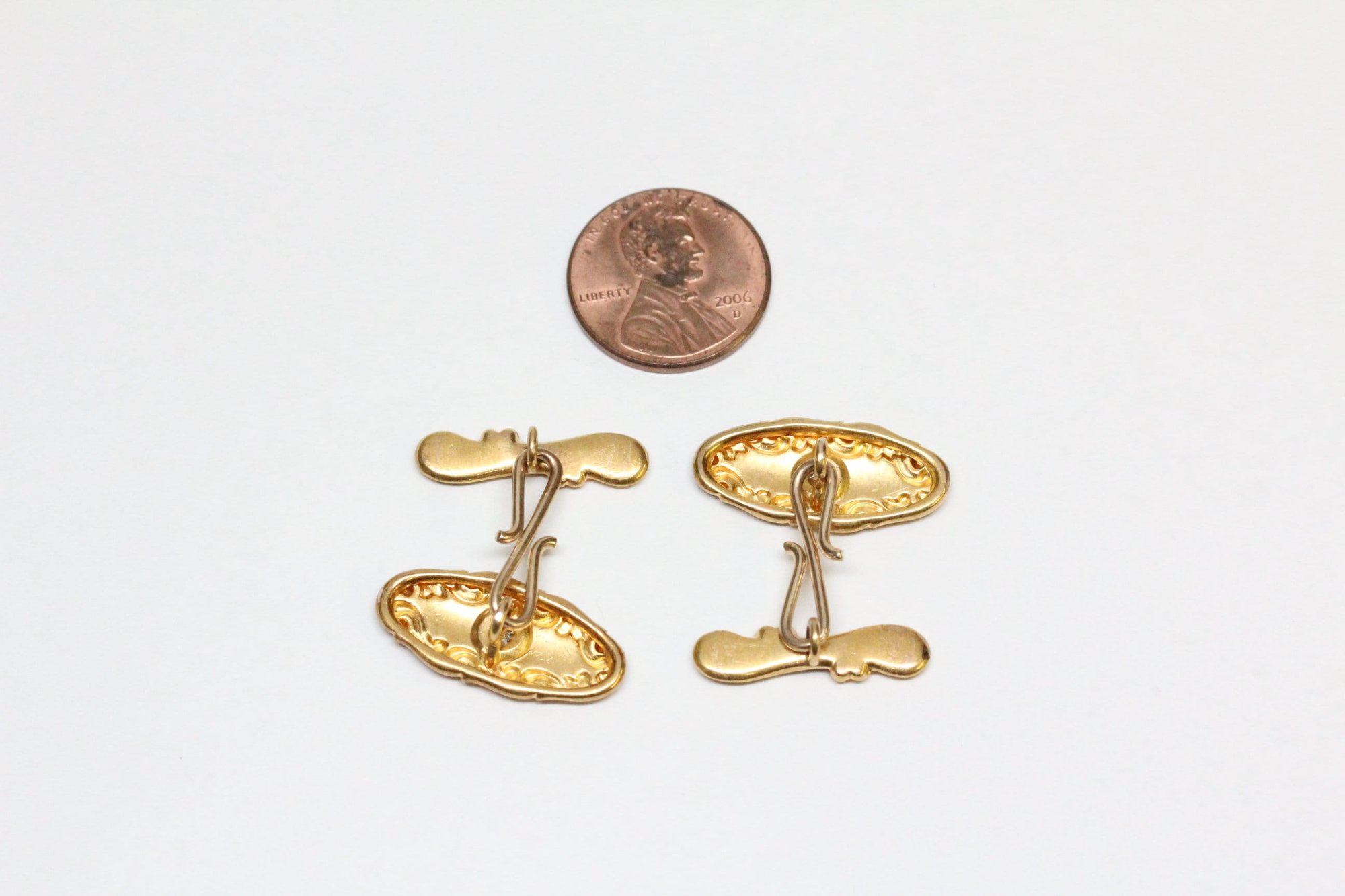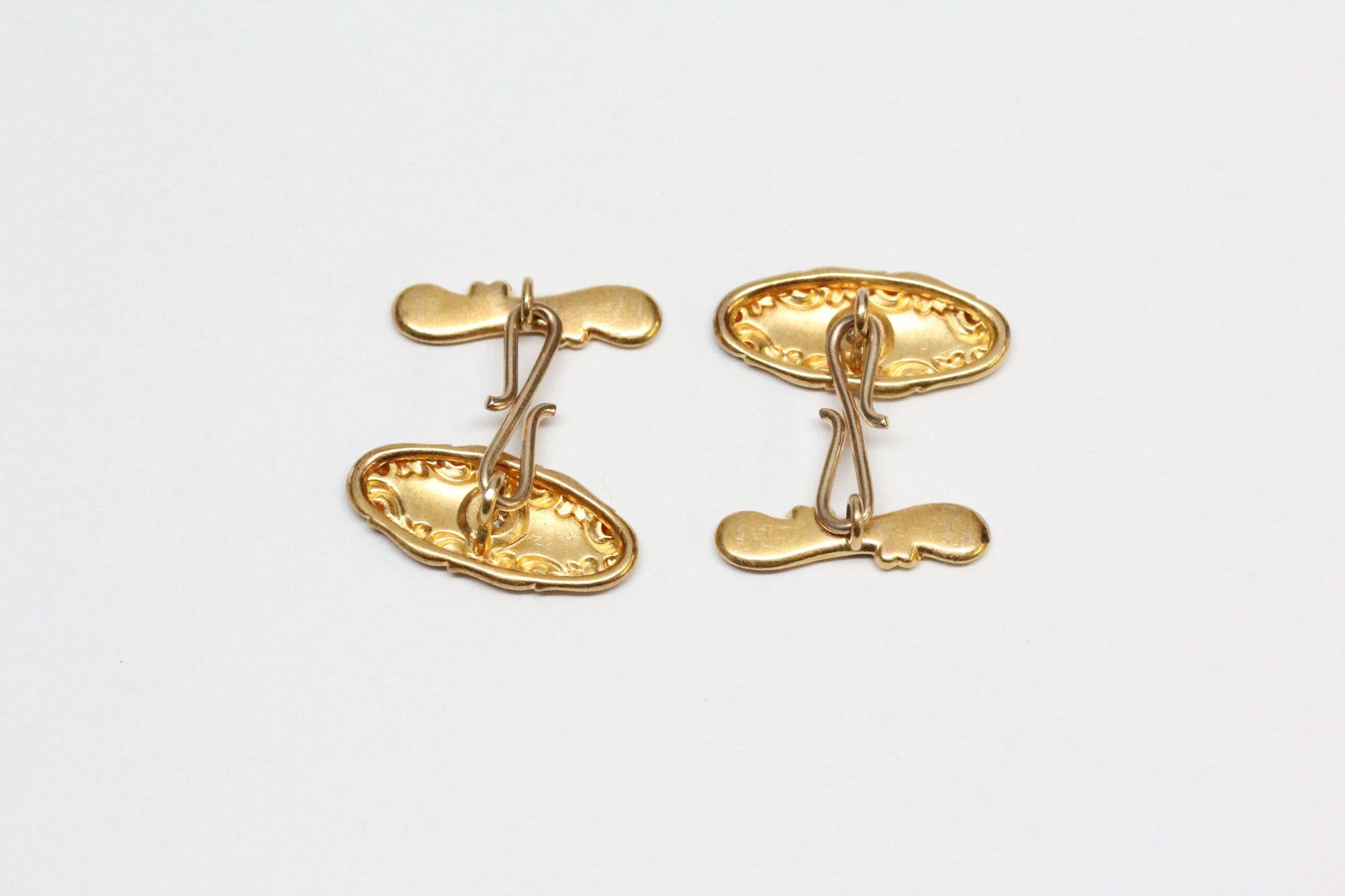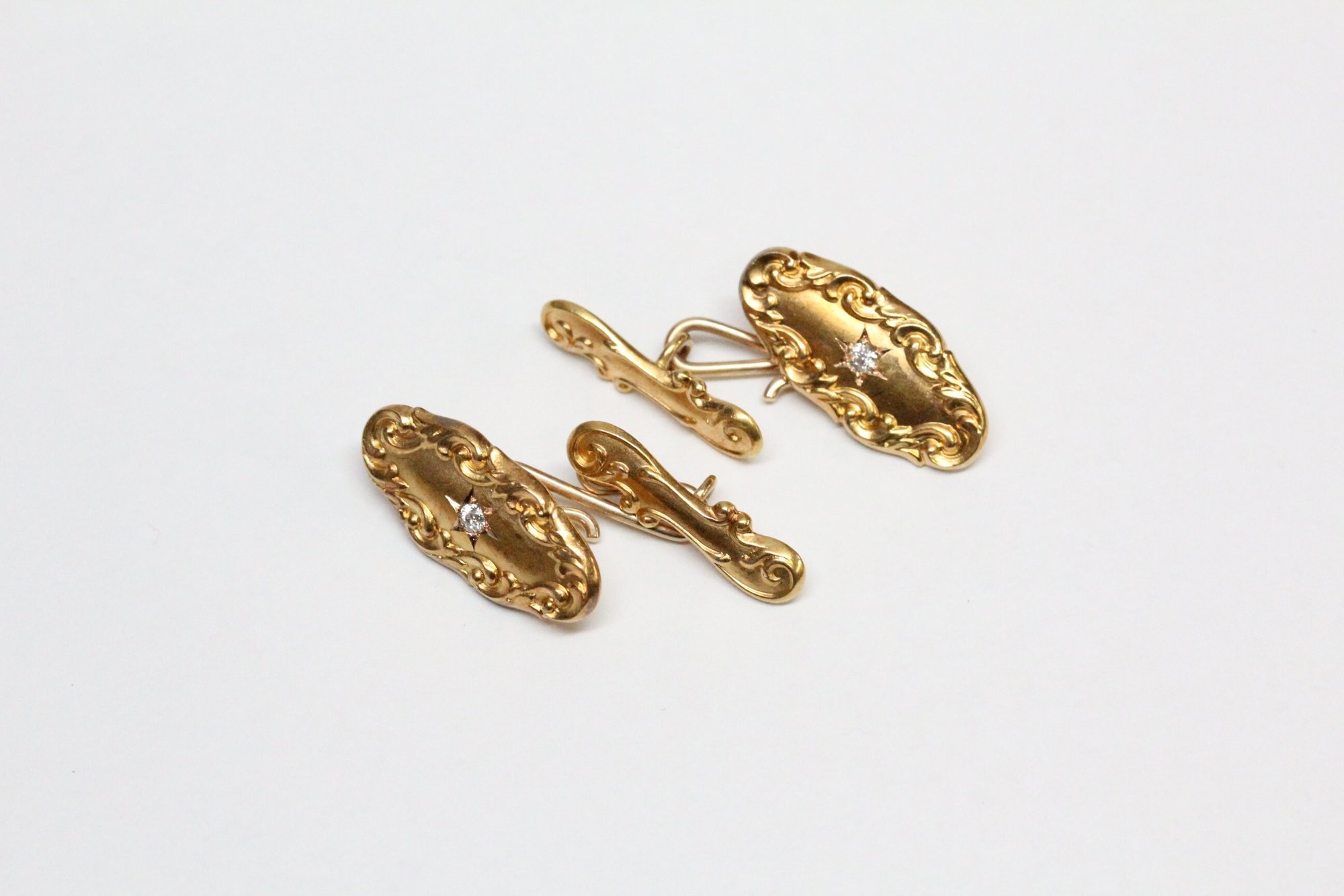 Art Nouveau 14k Gold, Diamond Cuff Links - Old European Cut Diamonds - Depletion Gilded