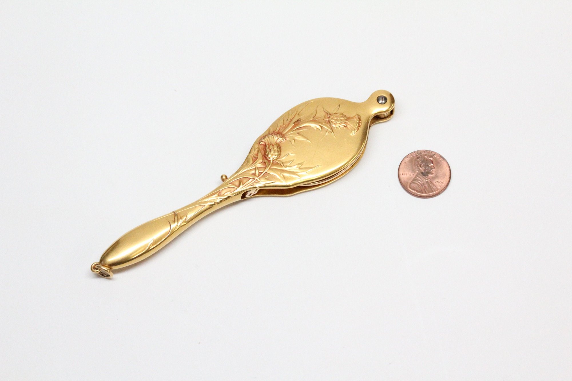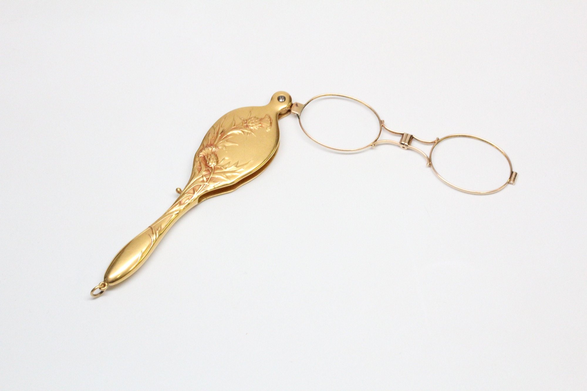 Original product name: Art Nouveau 14k Gold Lorgnette with Original Box - Absolutely Exquisite - Thistle Motif - All Original - Depletion Gilded - Museum Quality