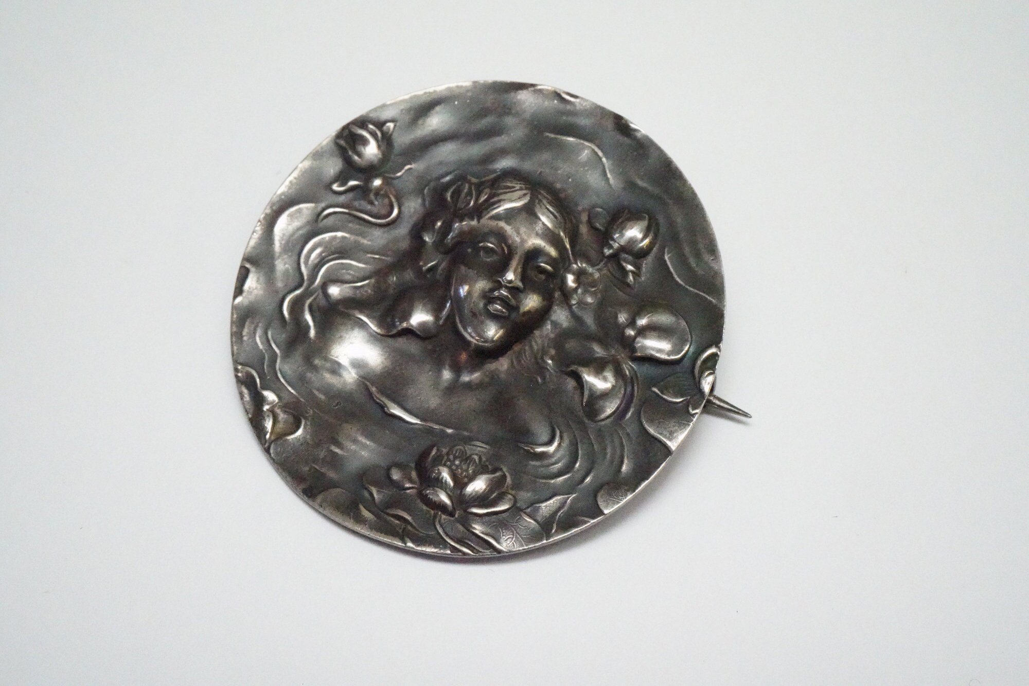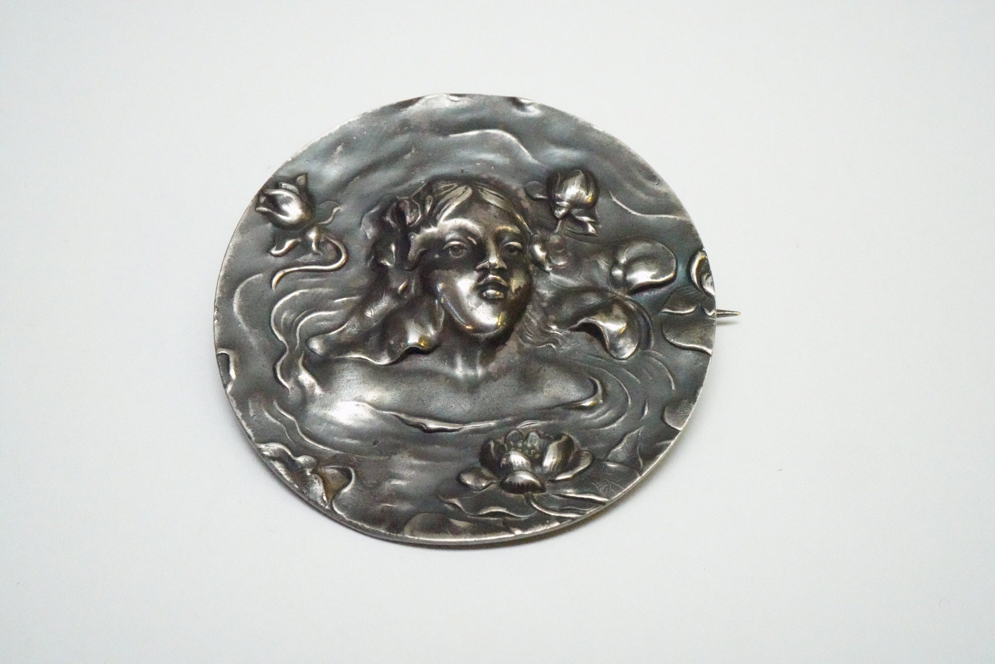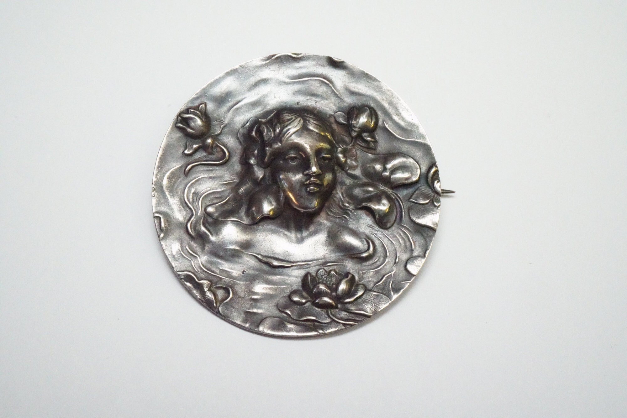 Art Nouveau Woman and Water Lilies Brooch - Exquisite Art Nouveau Brooch or Pin - Water Lily and ...