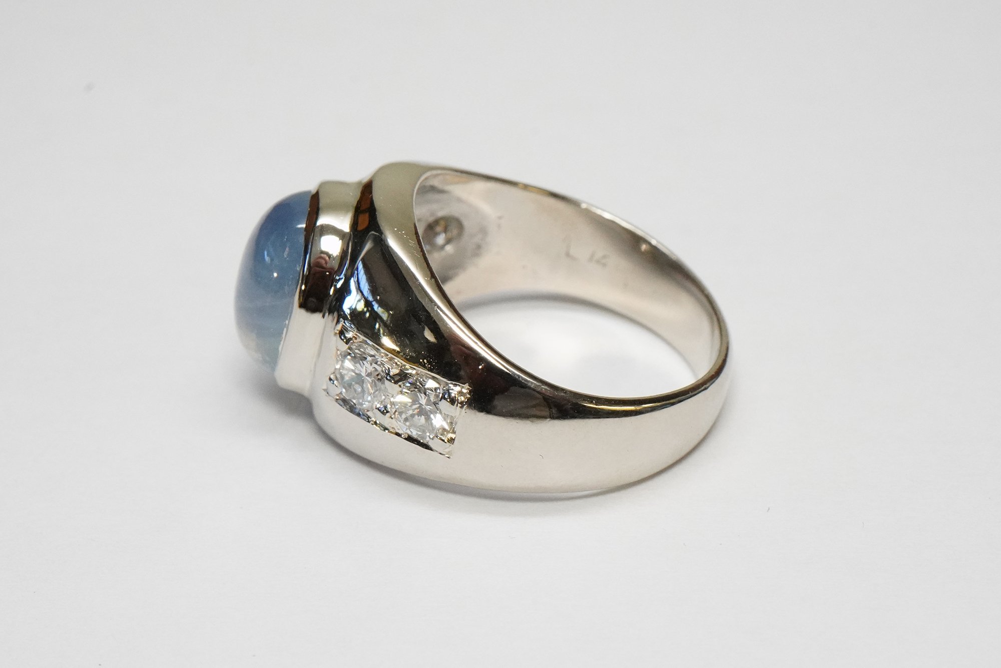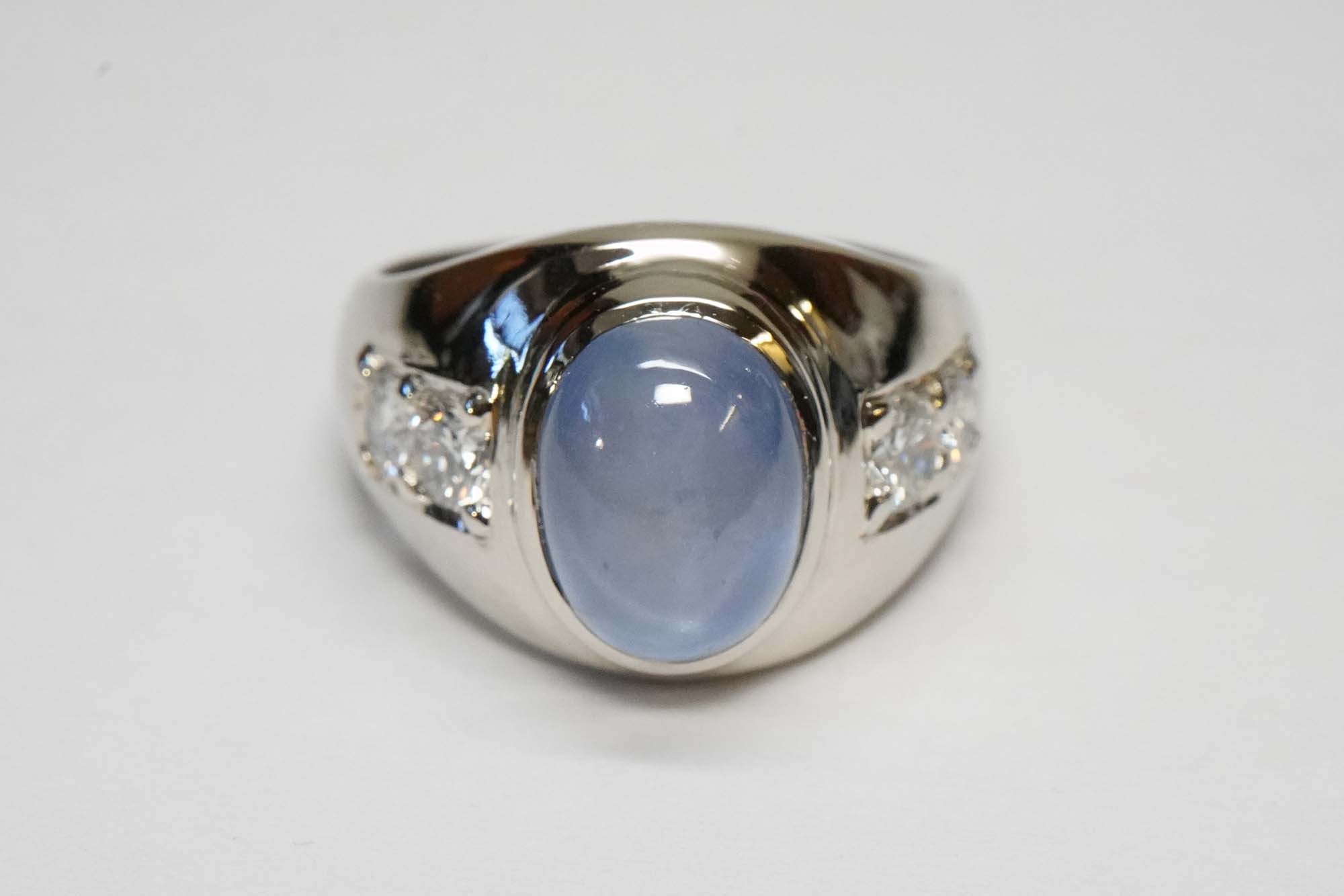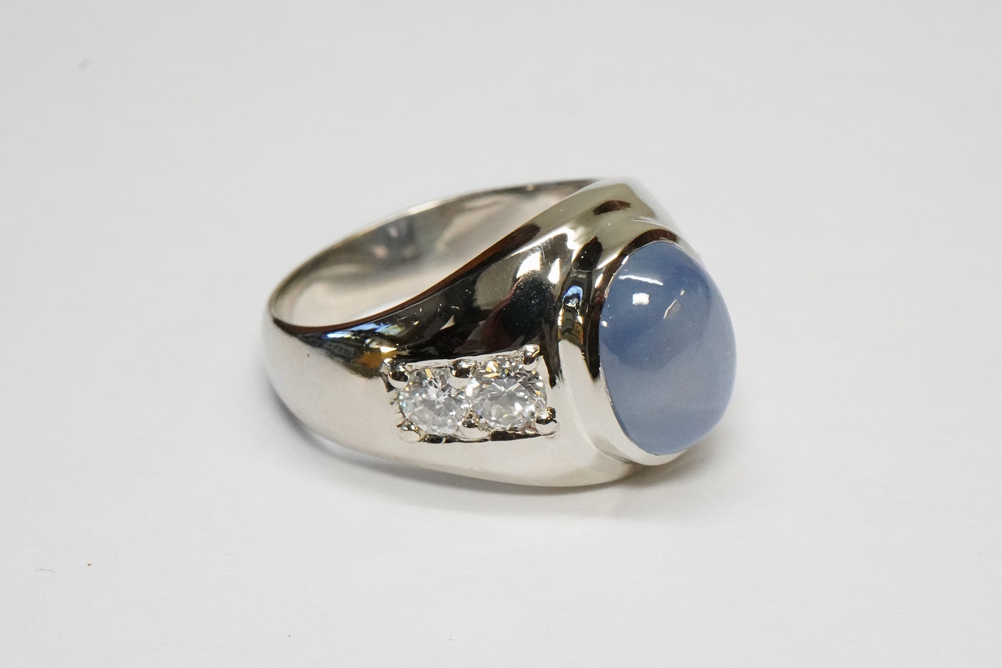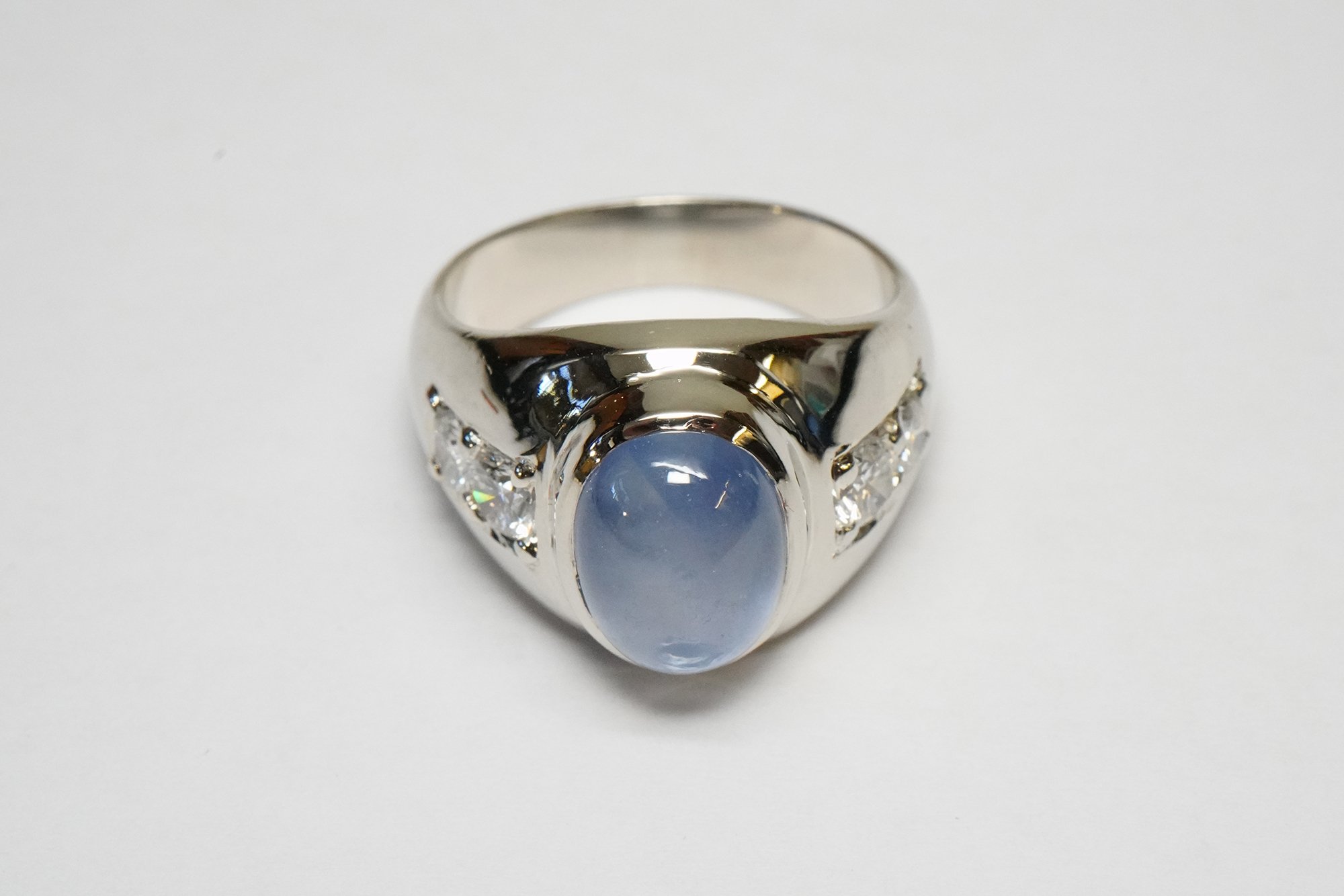 Classic MID CENTURY Gents 14k White Gold, Lavender Star Sapphire Ring - Size 8 3/4