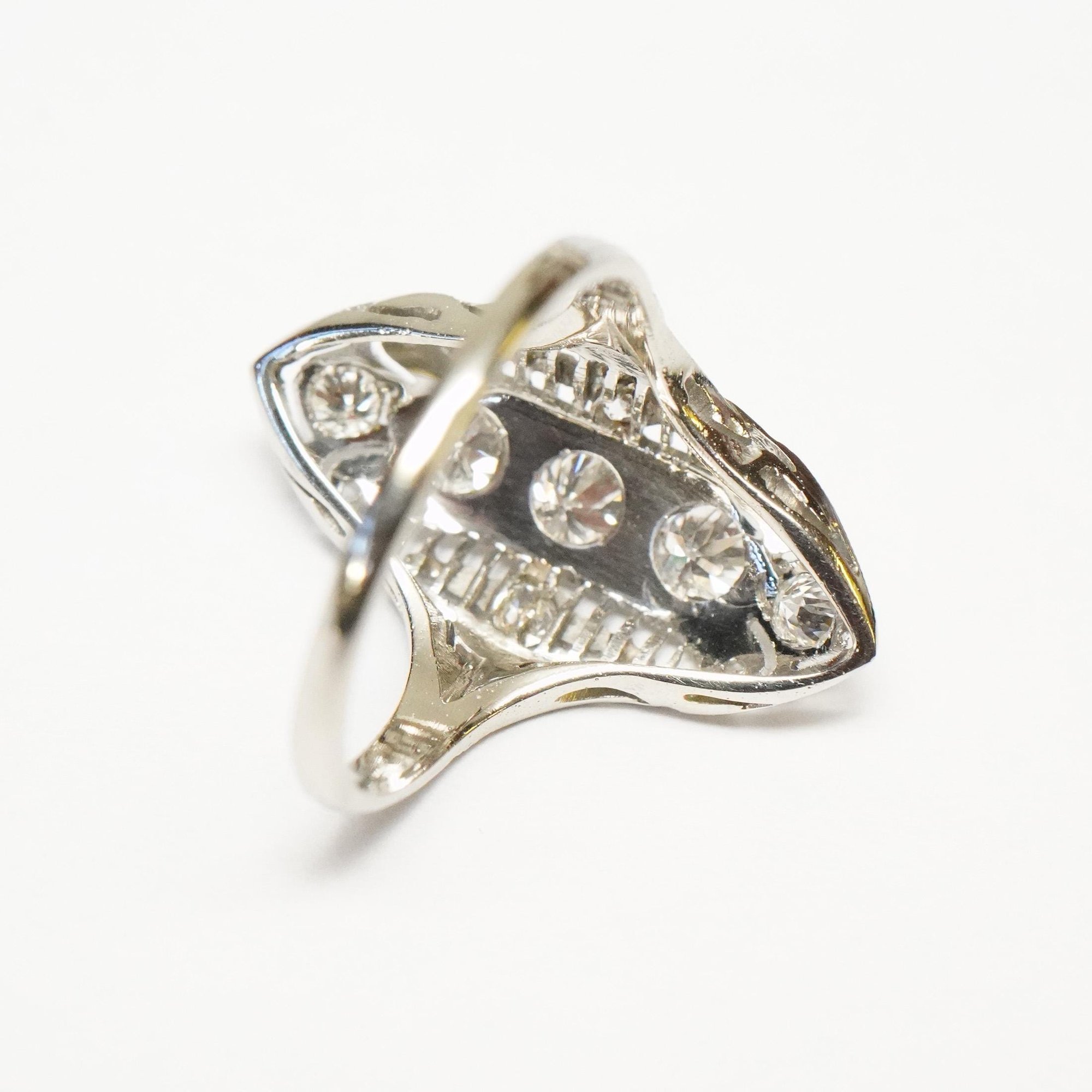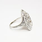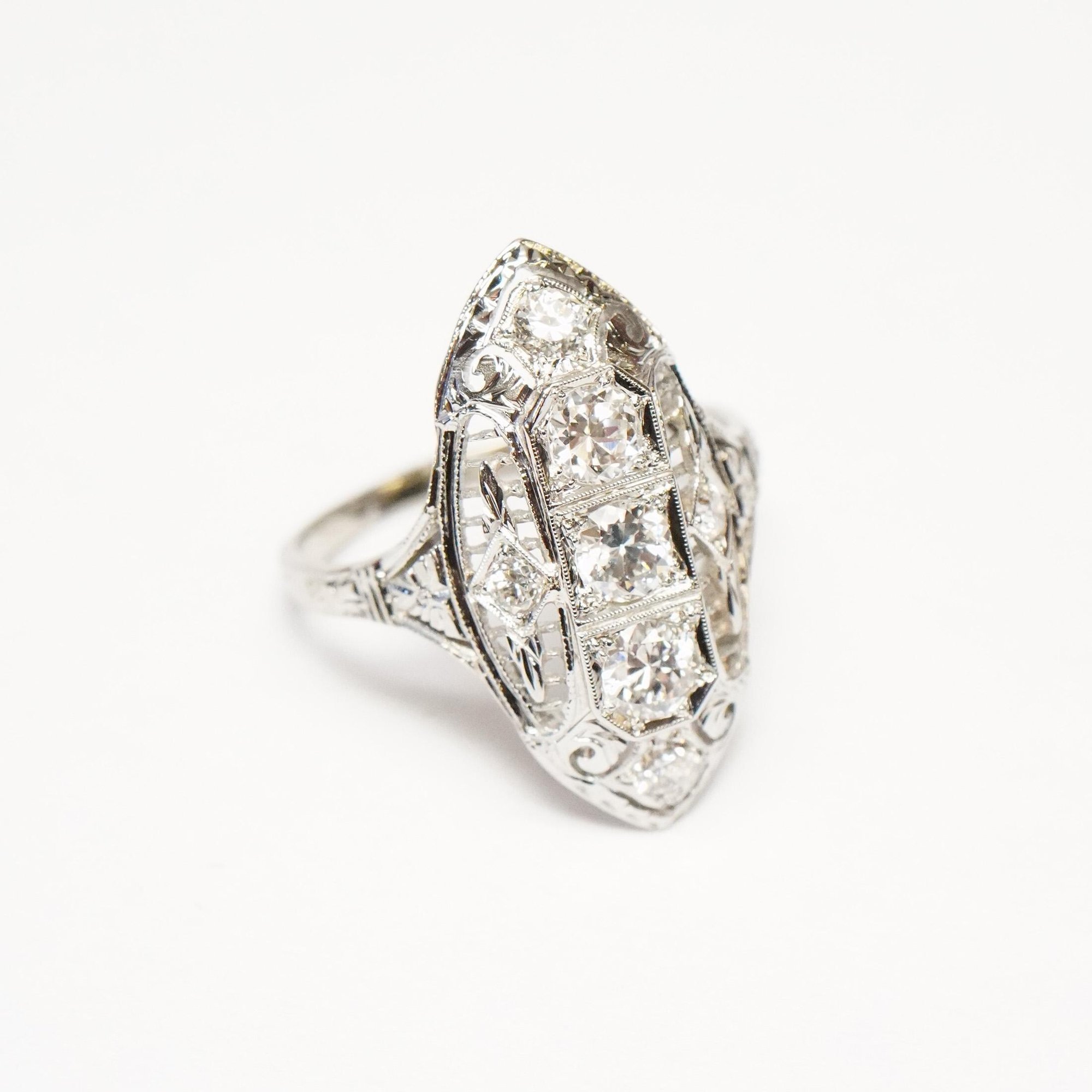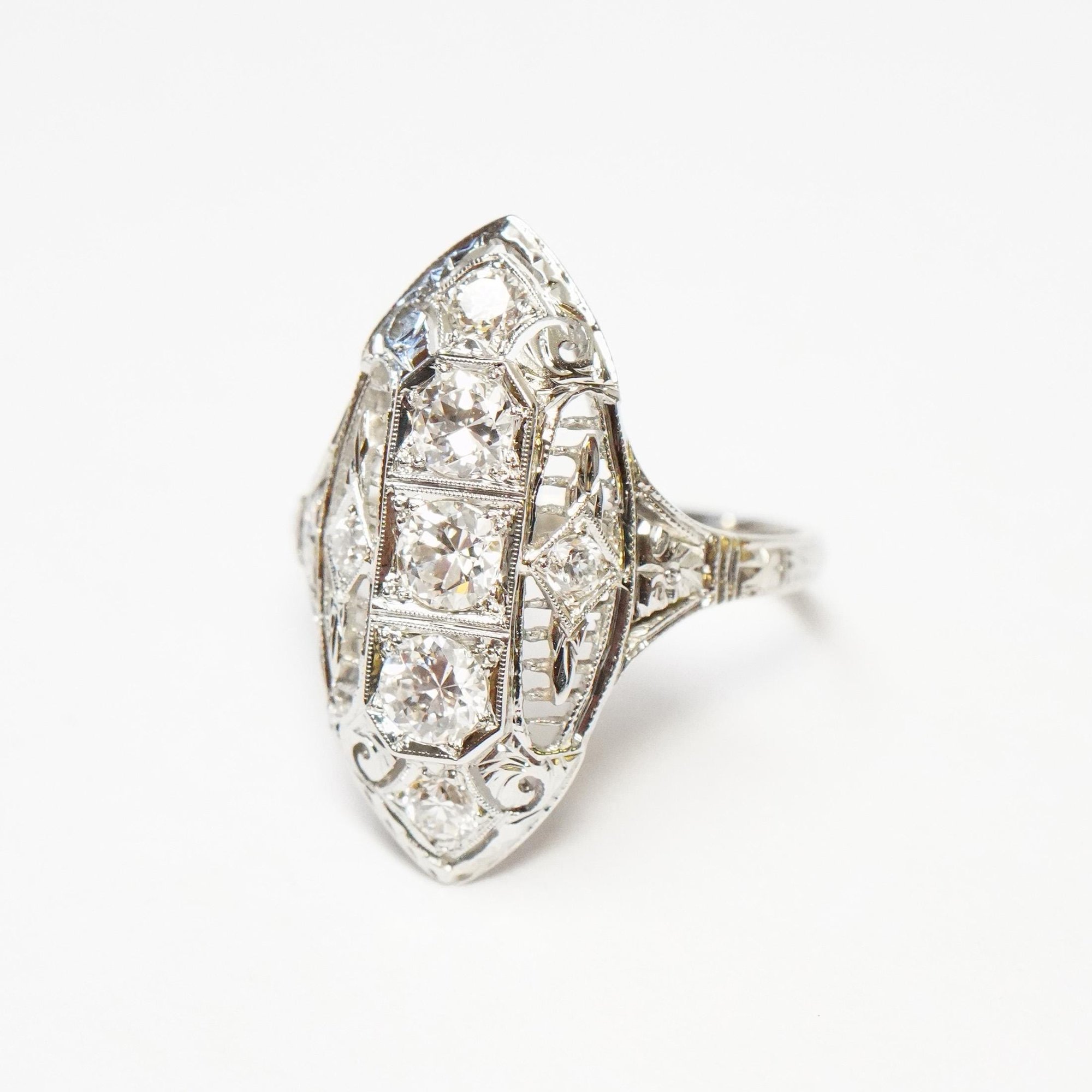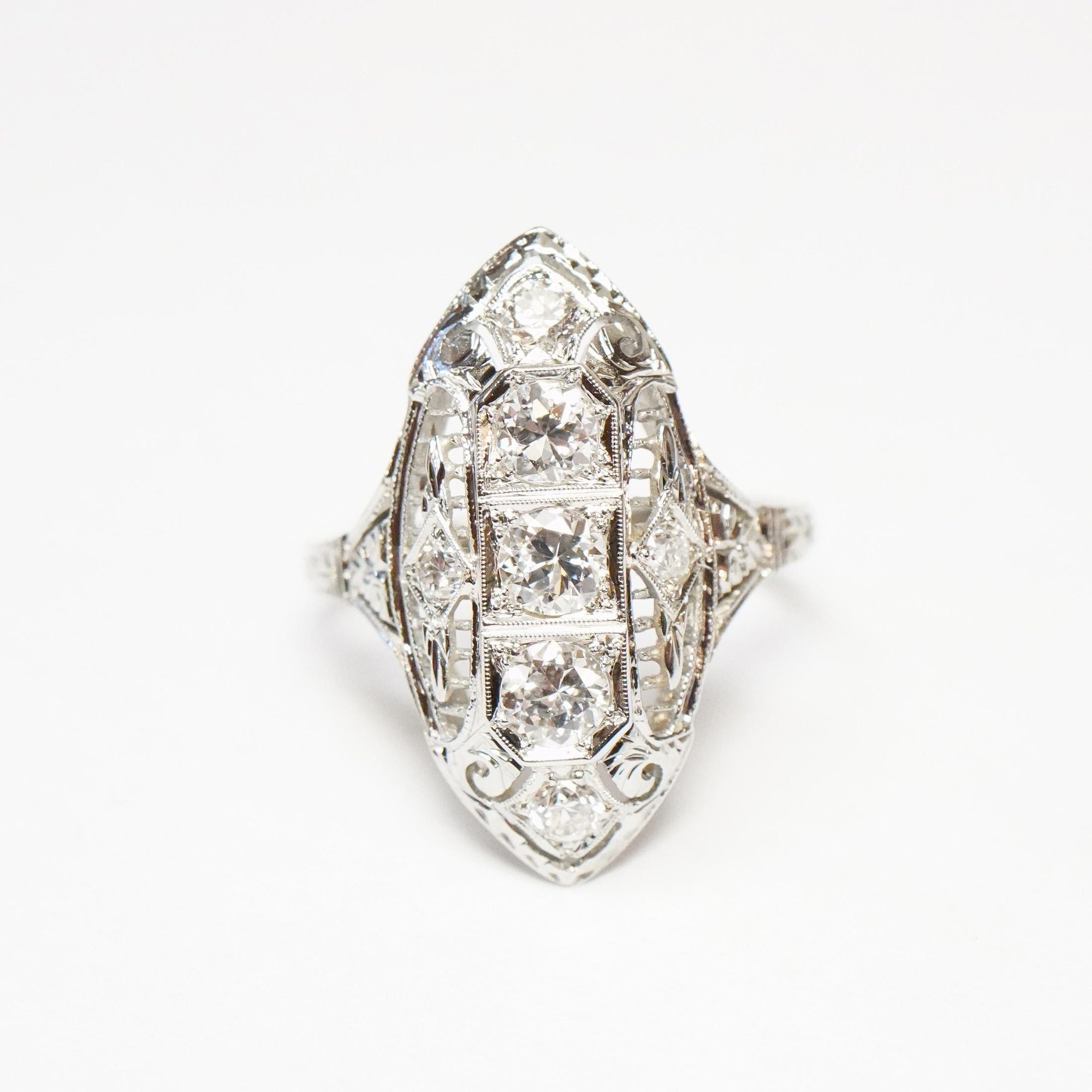 Original product name: Edwardian Style 18k White Gold, Diamond Filigree Ring - ~.70ct Total Weight in Diamonds - Mid Century Era, but Edwardian Style
