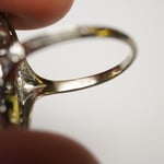 Notes - This ring exhibits lovely filigree in perfect condition. Mid-Century made, in an Edwardian style.