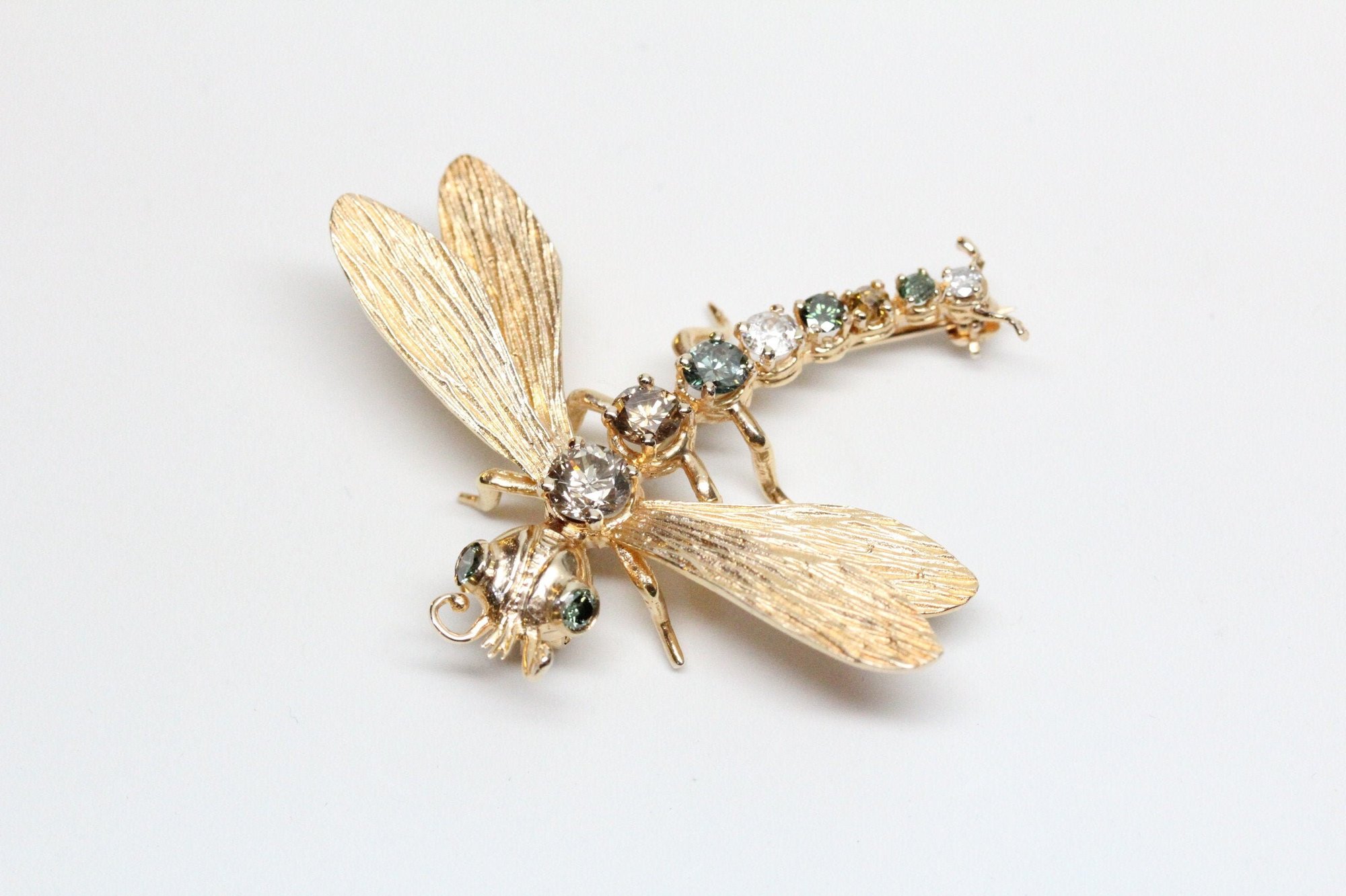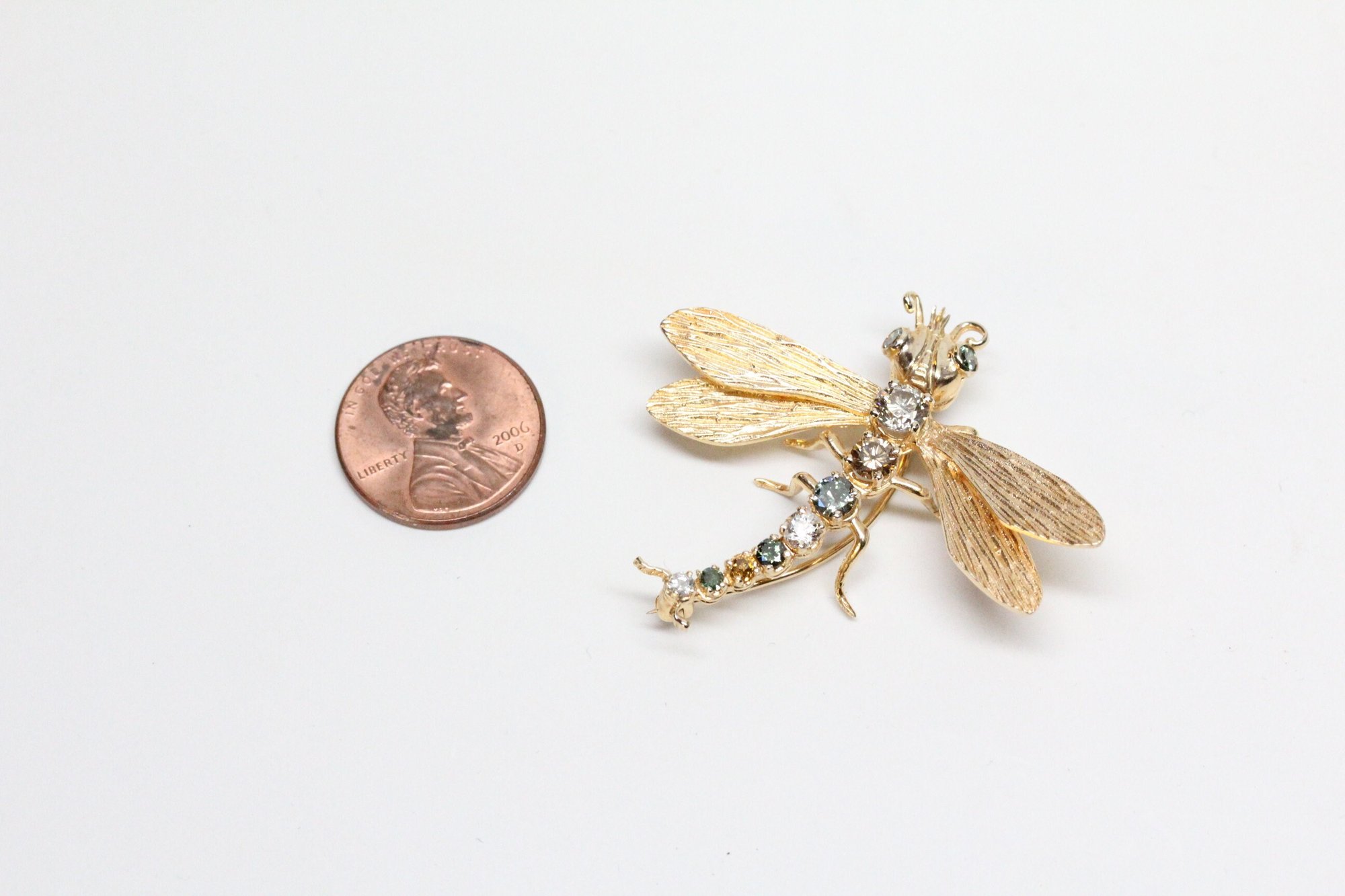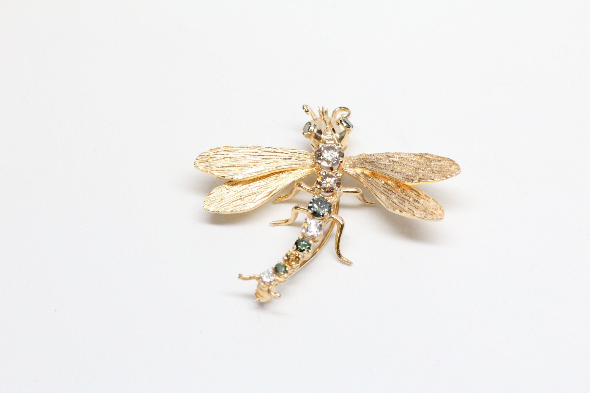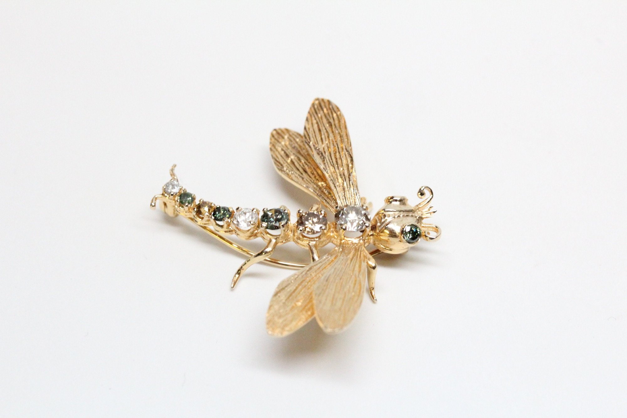 Mid-Century 14k, Fancy Diamonds Dragonfly Insect Brooch