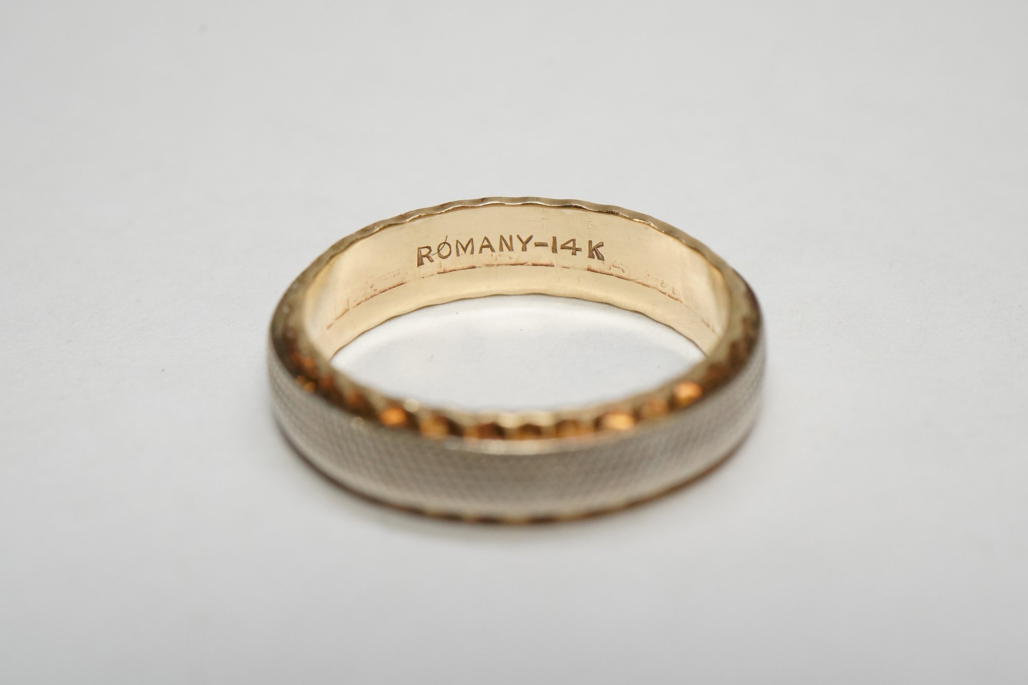 Mid Century 14k Two-Tone Gold Gents Wedding Band by Romany