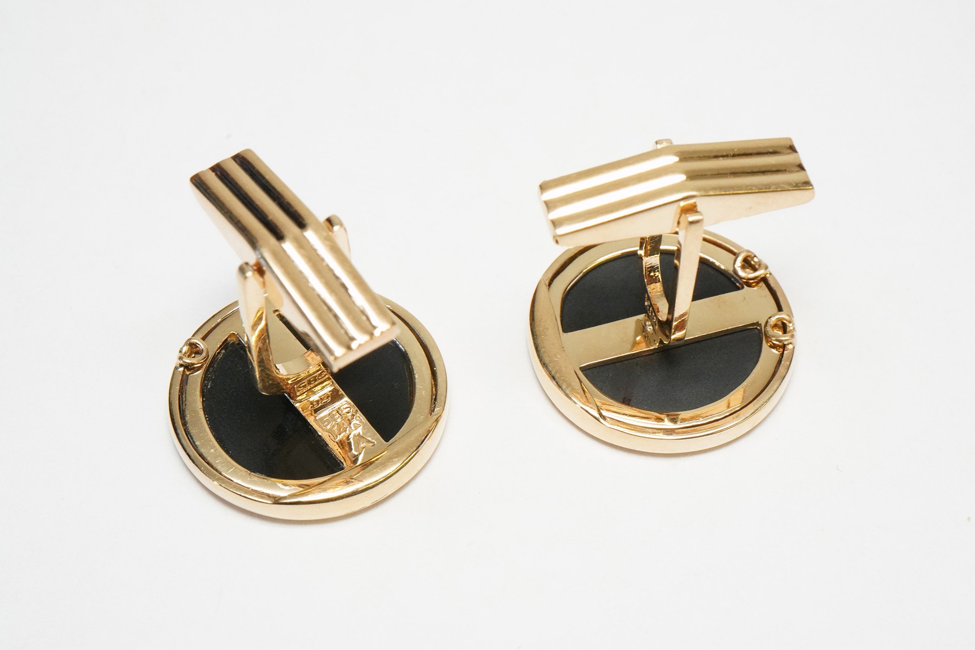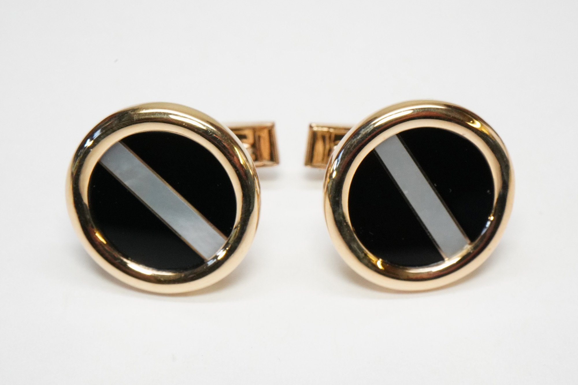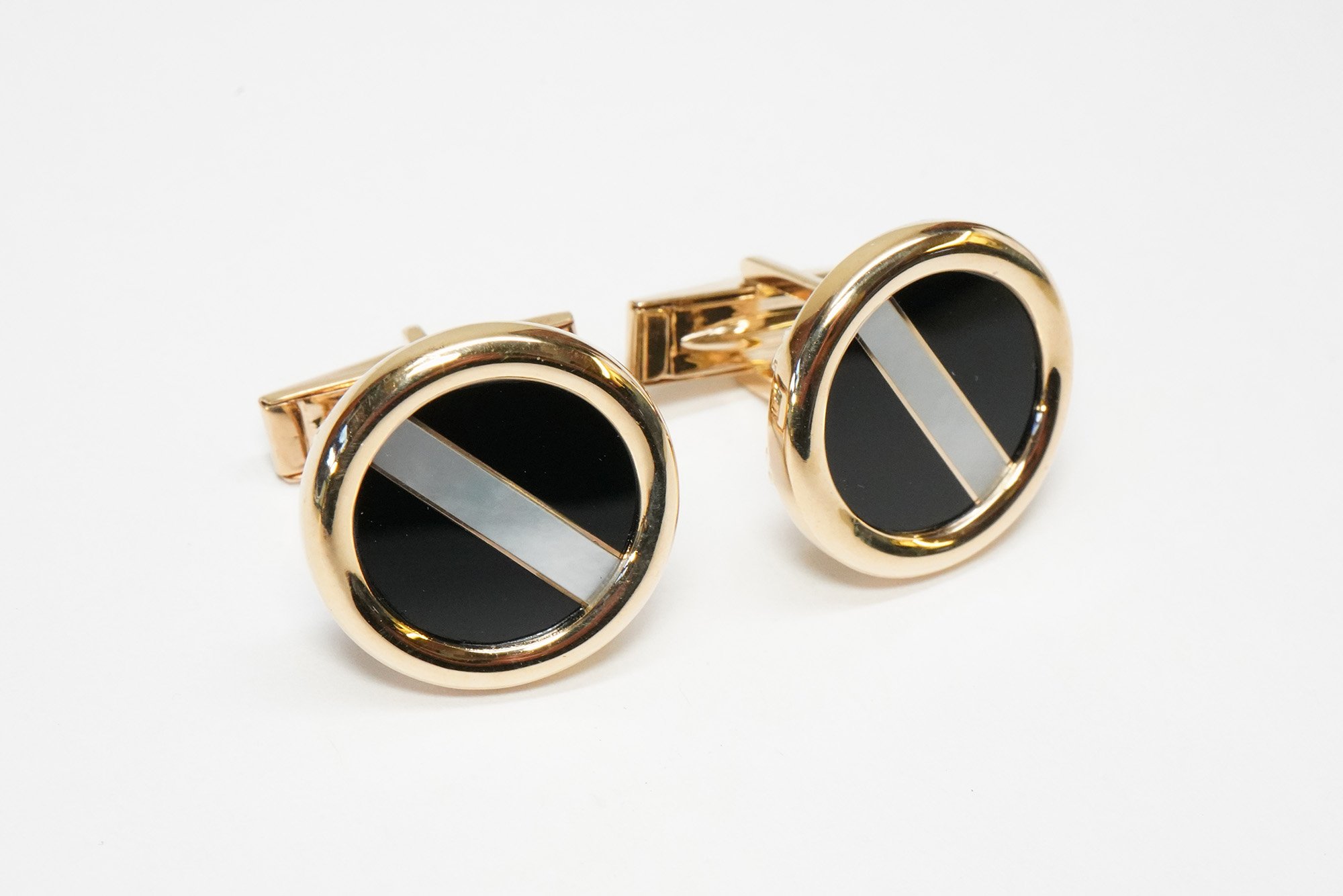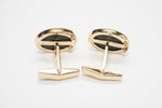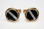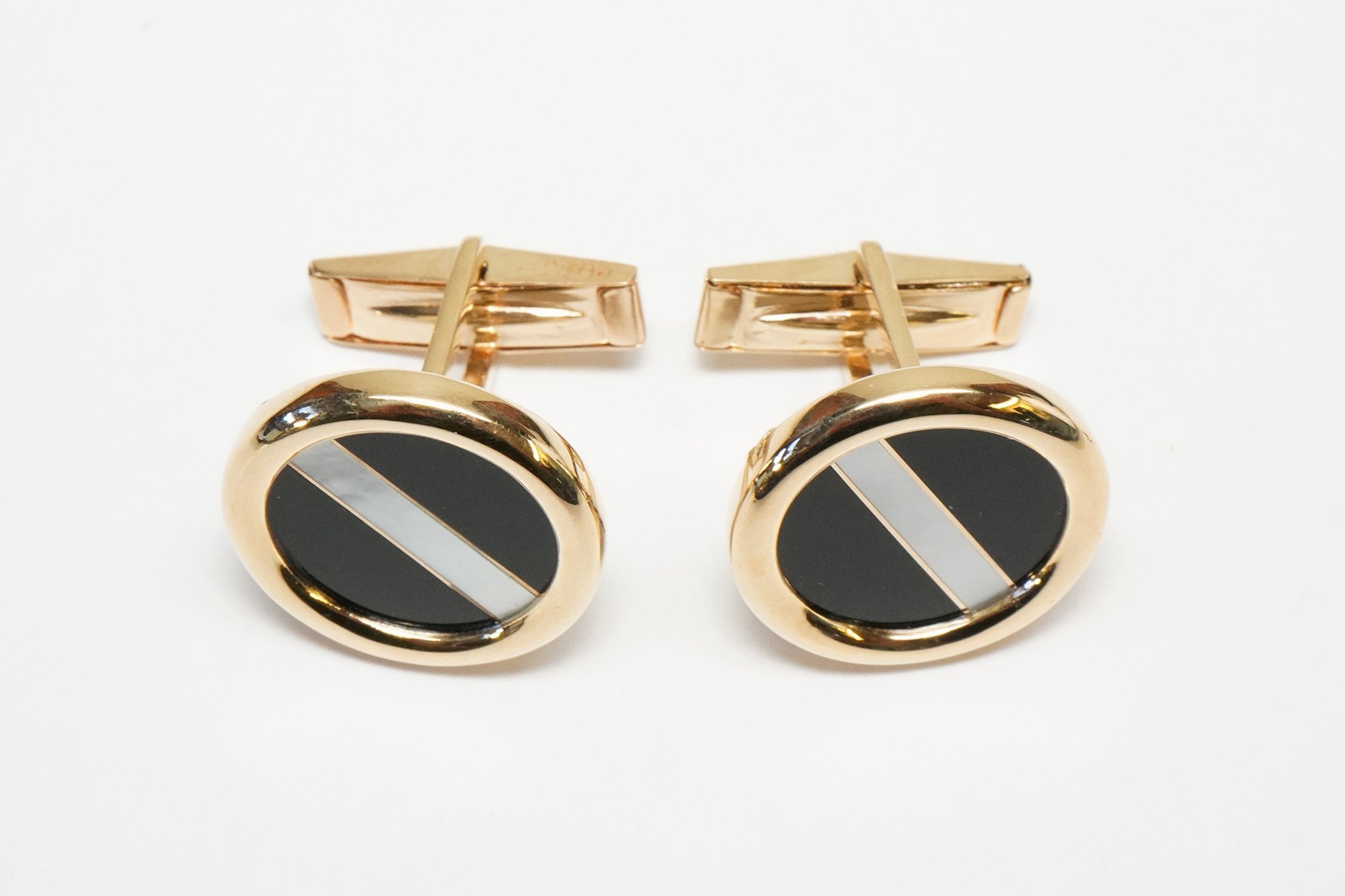 Mid Century 14k Yellow Gold, Onyx, and Mother-of-Pearl Cufflinks - MCM Cuff Links