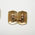 Material - 14k depletion-gilded yellow gold with black glass enamel accenting.