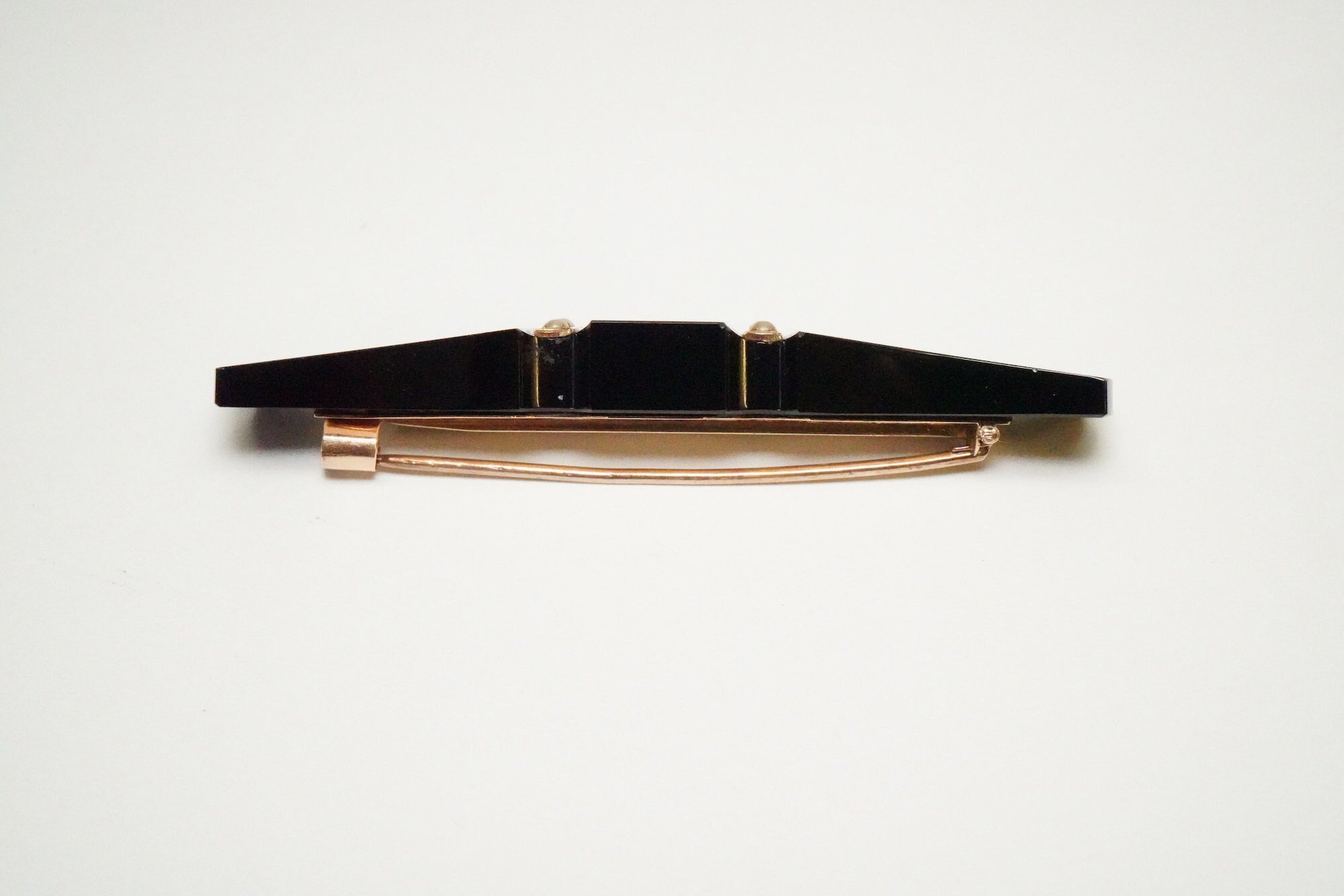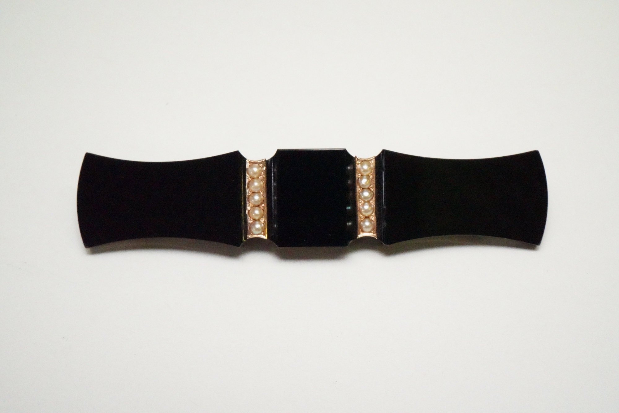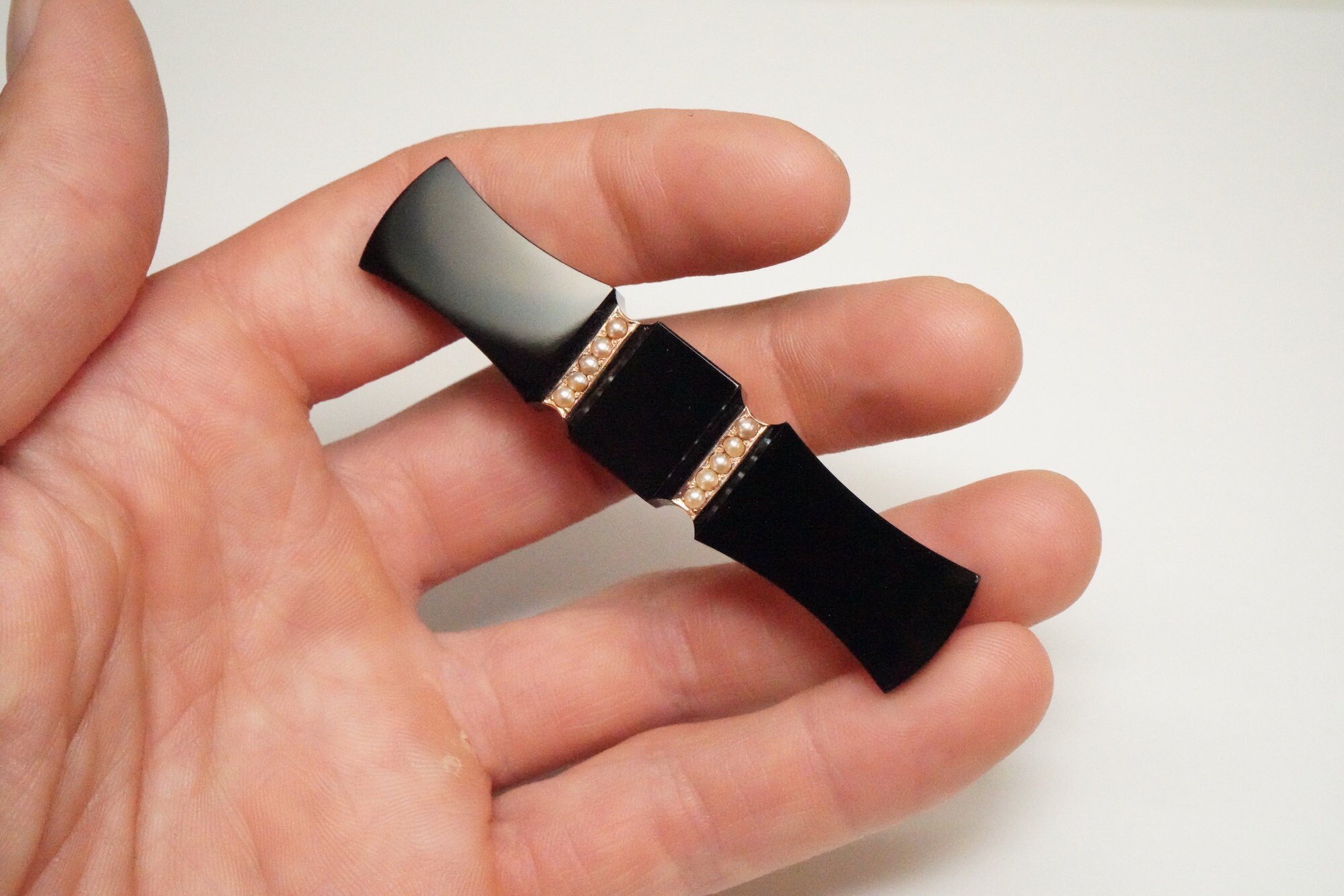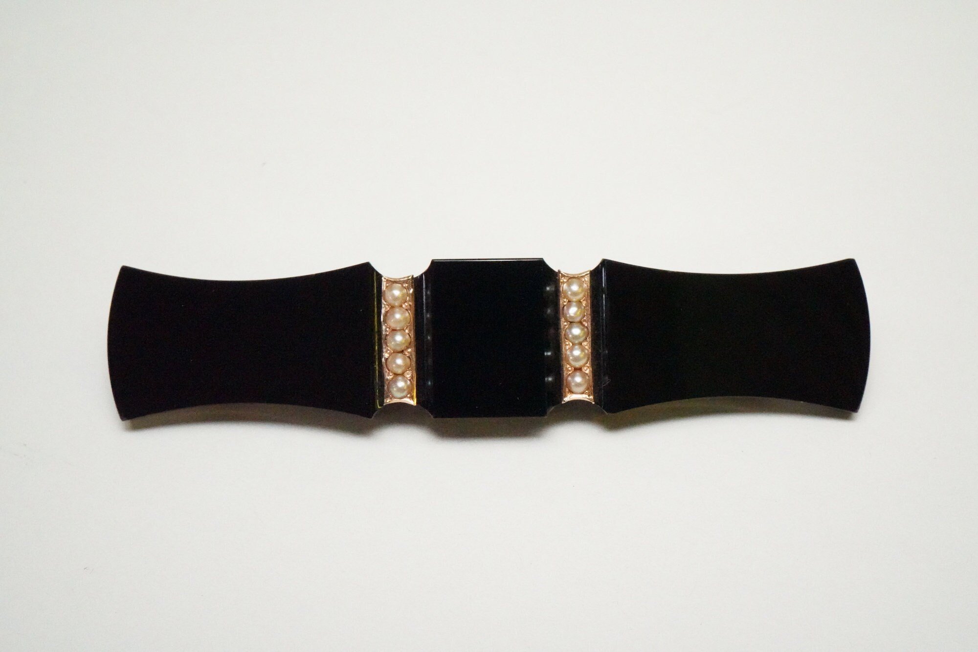 Original product name: Victorian 14kt Yellow Gold, Carved Onyx Bar Pin, with Seed Pearl Accents - Truly an Exquisite Old Brooch
