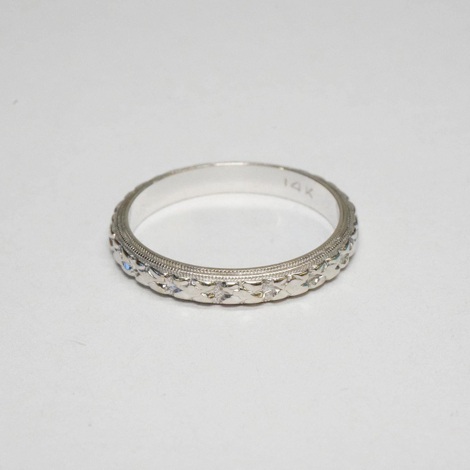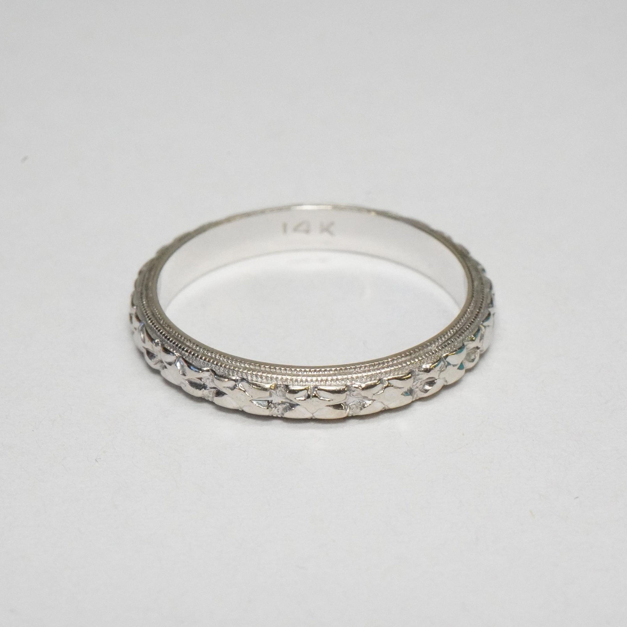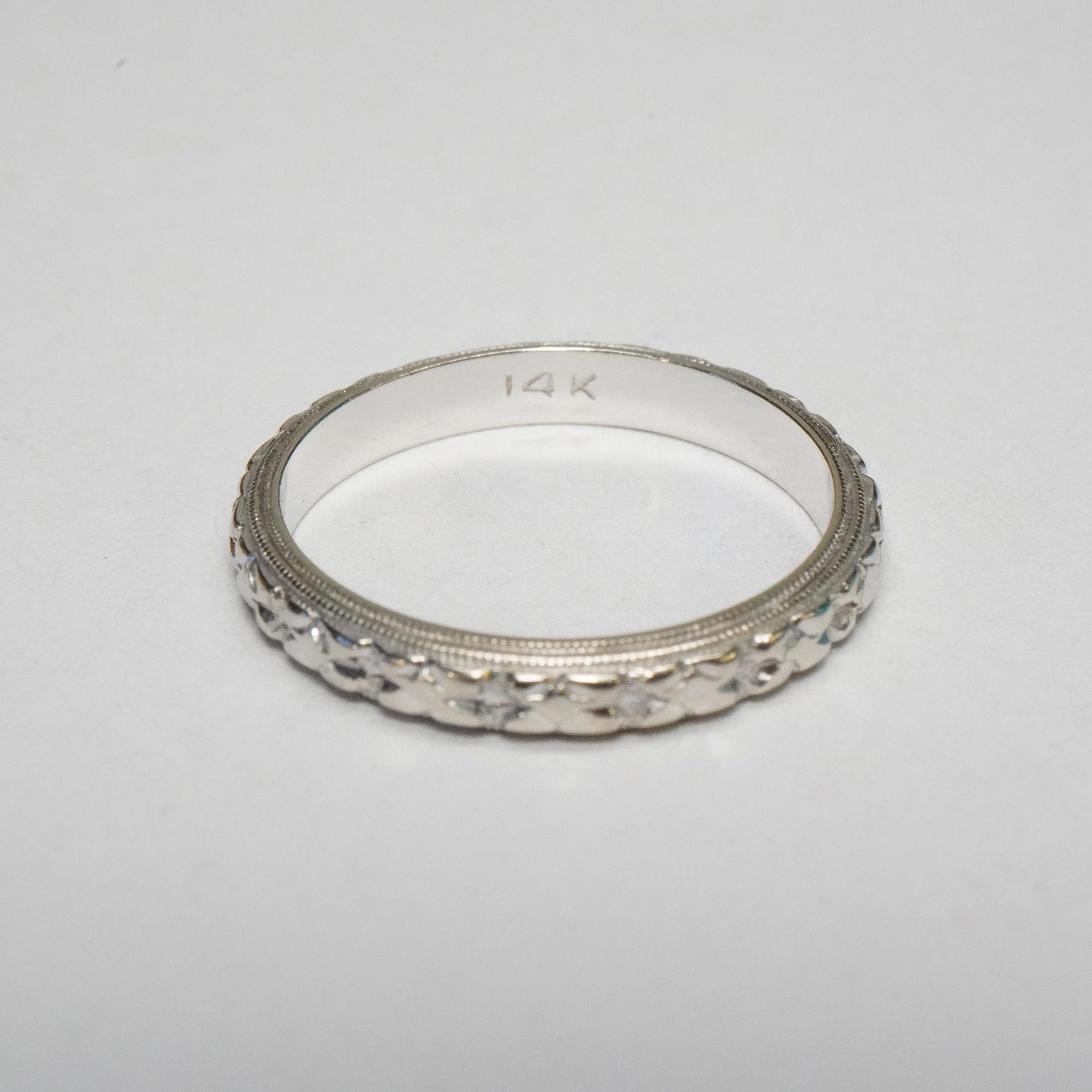 Vintage 14k White Gold Pattern Band - Vintage White Gold Pattern Band - Rare, Size 6 1/2